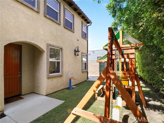 Unique detached end unit w/ corner wrap around yard inside gated community. Feels like a single family home w/ private entry gate. 4 bedrooms + loft+ 2.5 baths. Pride of ownership. Well- maintained. Light & bright. Features include upgraded flooring throughout, kitchen w/ stone counters, upgraded appliances, & built-in pantry, recessed lights, living room w/ fireplace, formal dining area, & sliding door to patio. Convenient & updated guest bath downstairs. Stairs w/ elegant railing lead you upstairs to bonus loft area. Spacious master bedroom suite boasts vaulted ceiling, dual closets, en suite bath w/ skylight, dual sinks, separate shower, & tub. 3 more bedrooms + upgraded full hall bath w/ tub. Mountain views from bedroom & backyard patio. Expansive, private yard surrounded w/ tall trees & greenery is upgraded w/ patio, turf, & grassy areas. Direct access to 2-car garage. Guest parking available. Rancho Cascades location, close proximity to the 405, 5, & 210 Freeways. Your new home awaits!