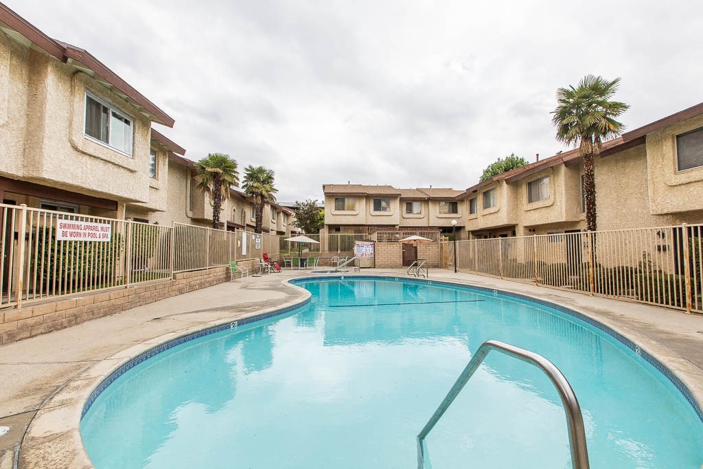 Step into this beautifully upgraded 2 bedrooms, 2 bath townhome located in the gated community of Cabrillo Park Townhomes! The open concept kitchen features granite countertops, stainless steel appliances, and an abundance of natural light. The spacious dining room and living room make a great entertaining space leading to the private backyard patio. There is a large in ground pool and spa located in the center of the community. Conveniently located near the 210 freeways, schools and shopping centers. This townhome shows very well and is the perfect starter home for any family.