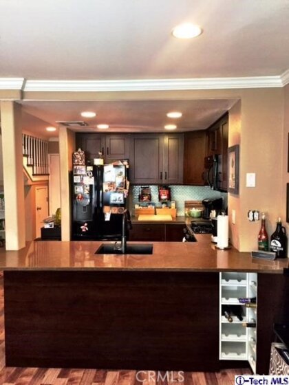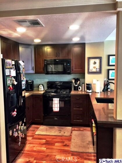 Perfect starter home. Move in ready! Stop by and you won't be disappointed. Wonderfully renovated, 2 years new with no expense spared. 2 bedrooms, 2 baths split level condo. Laminate flooring throughout. Open concept first level. Fully upgraded kitchen with quartz countertops, new backsplash, soft close cabinets and drawers and built in wine rack. New kitchen appliances include gas stove, microwave, dish washer and refrigerator. Both bathrooms are fully renovated with new vanities, sinks, showers/tub, lighting and plumbing fixtures. Both bedrooms have vaulted ceilings, custom shades and custom built closets, great for added storage. Small private patio leads to direct 2 car garage access. Laundry hook-ups and utility sink located in finished garage. Newer central HVAC unit.