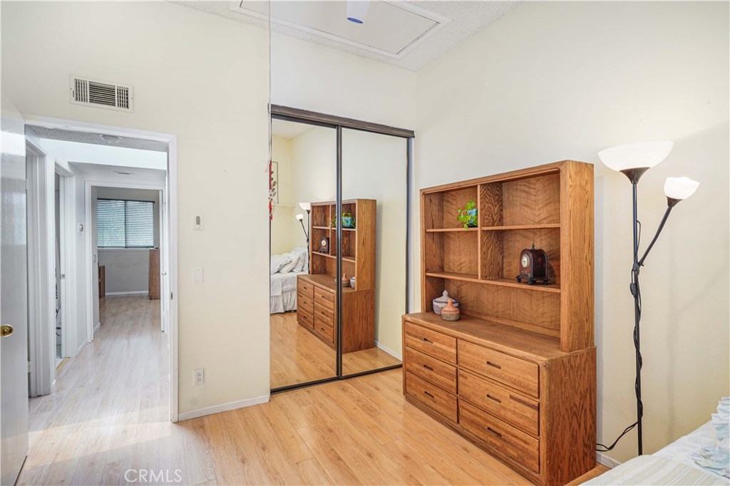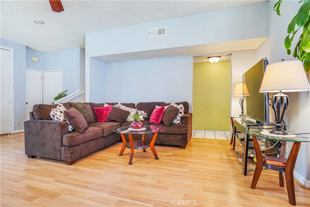 Tuck away in the Foothills you will find Crescent Park, a gated community w/flowering pathways, towering Palm trees & resort-like grounds. Corner end unit, two-story townhome w/french windows galore providing the prefect natural lighting, this unit feels like a HOME. Open concept floor-plan living room & dining area offers a contemporary fireplace with a private enclosed patio, waiting for you to enjoy the early evening sunsets. Spacious kitchen has honey oak colored cabinetry, laminate counter tops, double sinks, built-in appliances, tile flooring & pantry cabinet. Half bathroom downstairs is perfect for guests. Wood laminated staircase leads you to the upper level offering a skylight & secondary bedrooms w/mirror closet doors & modern light fixtures. Oh, and did I mention ATTIC bonus room (10X10) with flooring, lighting, 6" high center beam for head space, 5" closet rod for your extra clothes plus an easy pull-down ladder. Hall bathroom offers vanity, tub|shower enclosure w/mosaic tile flooring. Master suite has soaring cathedral vaulted ceilings, walk-in closet plus a wall closet area and a private full bathroom. Private 2-car garage w/bonus area, that can be used for extra storage or for your Buyer's water sport toys, this is a BIG garage area. Special features: Nest thermostat, custom window trmts, electrical panel updated breakers plus laminate flooring throughout. Community grounds offers a beautiful relaxing pool & spa area, it's like vacationing in Palm Springs.