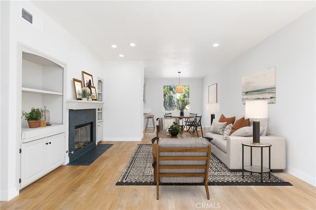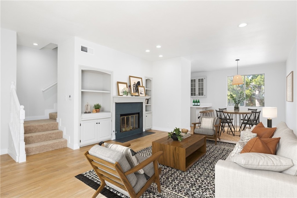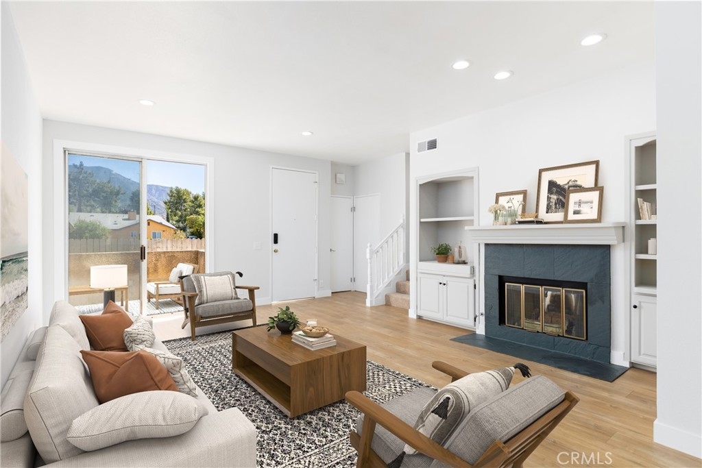 This beautiful Gated 3-bedroom 3-bathroom Trilevel Townhome located in highly sought after "Cresent Park Community" is not to be missed! Thoughtfully reimagined... this light-filled townhome features designer wood laminate floors that flow throughout... the inviting living room offers smooth ceilings, recessed lights, a cozy stone fireplace & built in cabinets / entertainment center. The large formal dining room that bursts with natural light opens to the upgraded kitchen featuring beautiful cabinets, quartz countertops & energy-efficient stainless-steel appliances. The upstairs conveniently includes 3 bedrooms and 2 beautifully remodeled baths. The primary bedroom with vaulted ceilings & awesome mountain views offers sanctuary with a spa-like ensuite bathroom with new vanity, custom tile & fixtures. The 2 additional bedrooms w/ plush carpeting & mirror wardrobe slider are adjacent to a remodeled hallway bathroom with stylish tile, new vanity & relaxing soaking tub. Enjoy the outdoors within your private patio overlooking the open space & mountain views. With the new interior & exterior paint, separate laundry area w/ built-in's and 2 car attached garage w/ bonus room (perfect for office or gym)... this is the one you have been waiting for!
