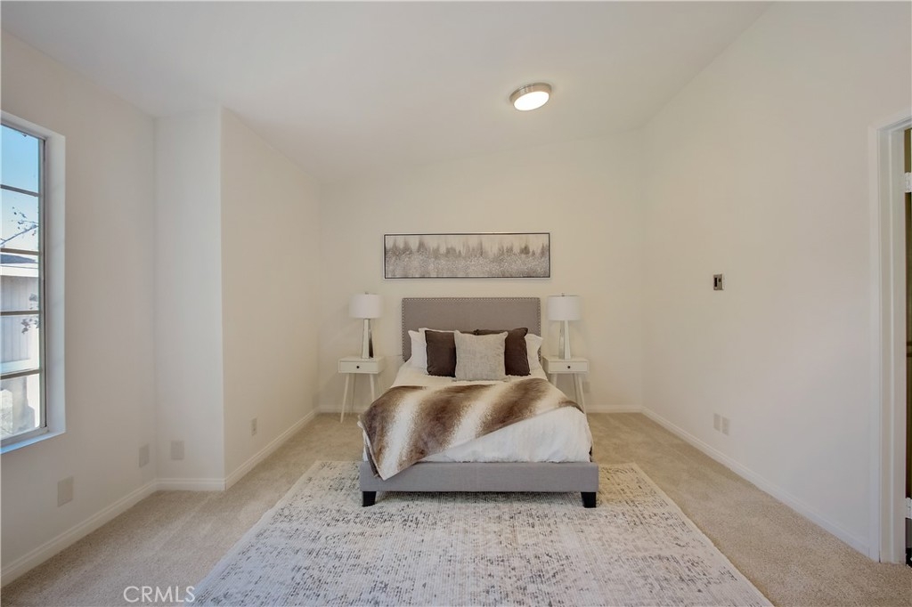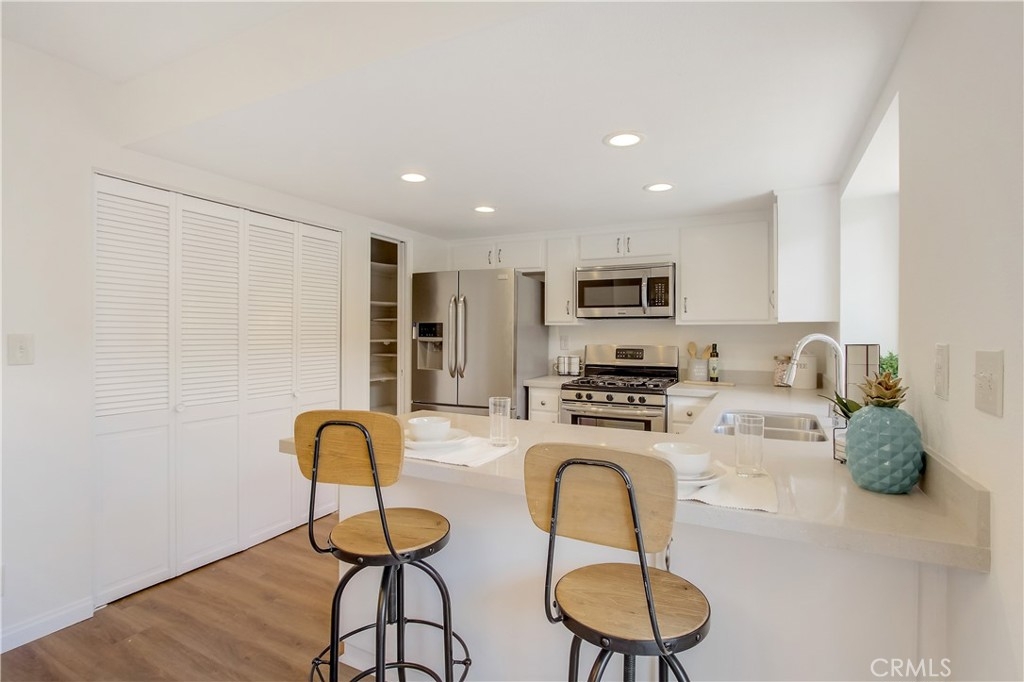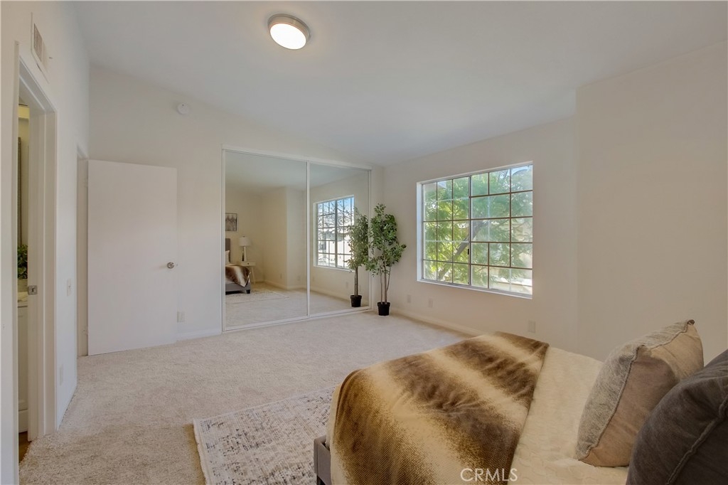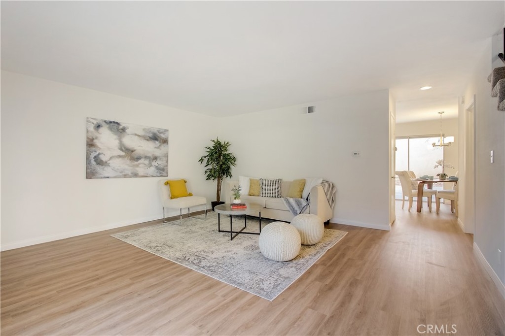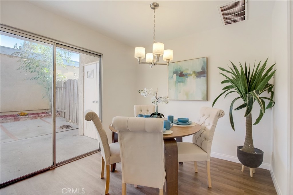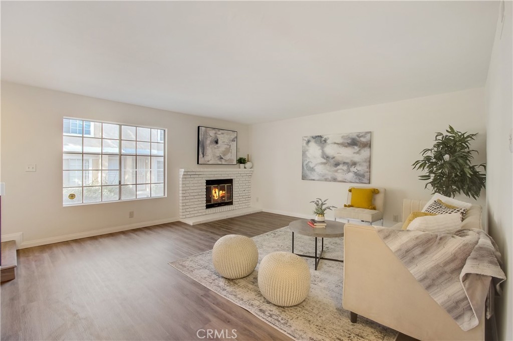 Welcome to this recently updated 3 Bedroom 2.5 Bath amazing 2- level townhouse. Laminate wood floors compliment the bright natural lights. The kitchen features fresh white cabinets, a refrigerator, a bar counter, and a separate eating area with a slider to the patio. The living room includes a cozy white brick fireplace. The Primary suite features plush carpet, mirrored sliders, and an attached updated bathroom. Relax in the serene private back patio. The community offers a huge pool and spa. Detached two car garage and gated community. Great location near shopping, restaurants, and freeways.