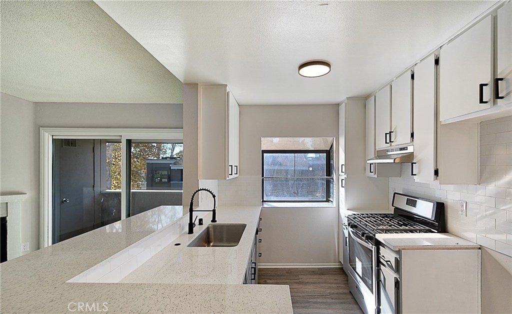 Welcome to this wonderful condo in the heart of beautiful Sylmar, this home features one bedroom, one bathroom and just under eight hundred square feet of living space. This charming condo has been recently updated and features freshly painted cabinets, quartz counter tops and stainless steel appliances. Luxury Vinyl (LTV) flooring throughout the home which is scratch and dent resistant. Newer dual pane windows, community pool as well as a detached two car garage. Vaulted living room ceilings with fireplace, upper unit that is ready to move in today. Great place that is ready to call your own today.