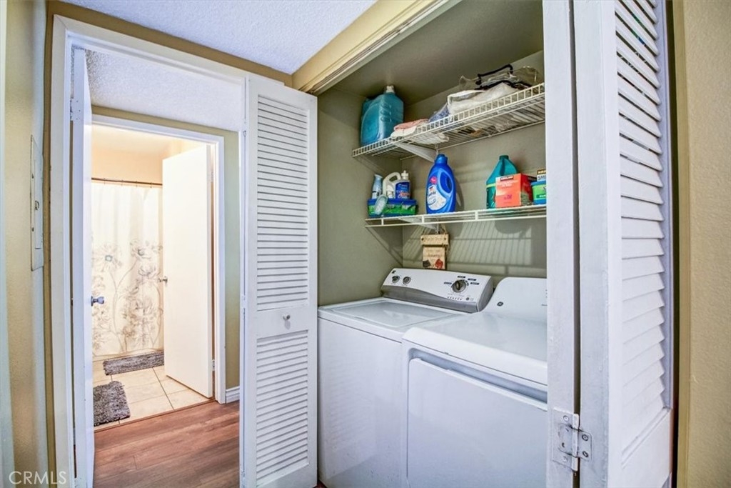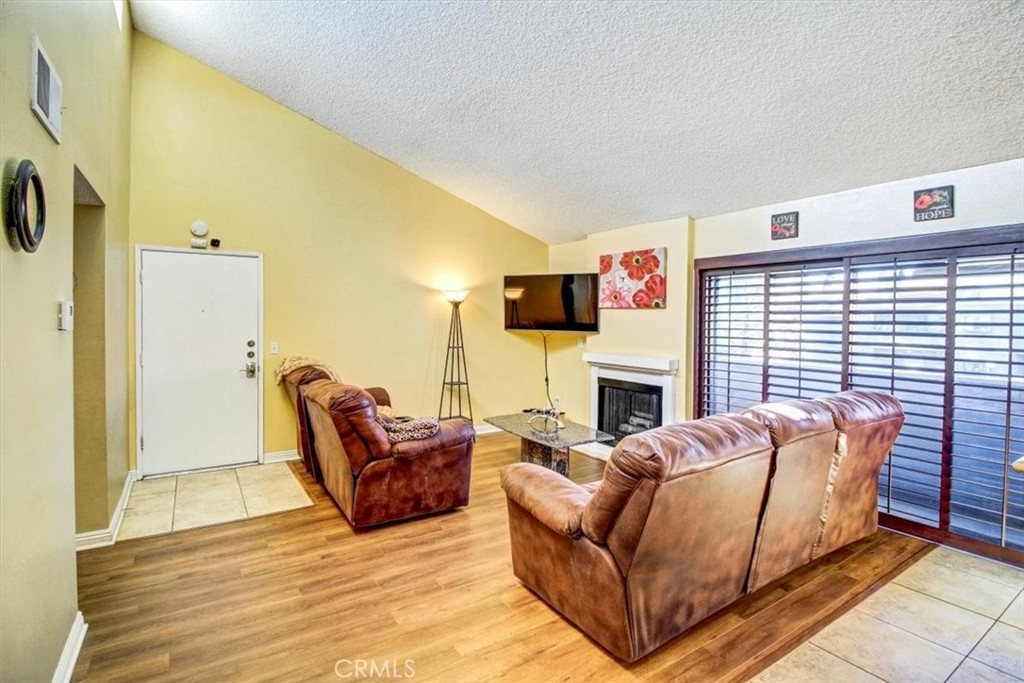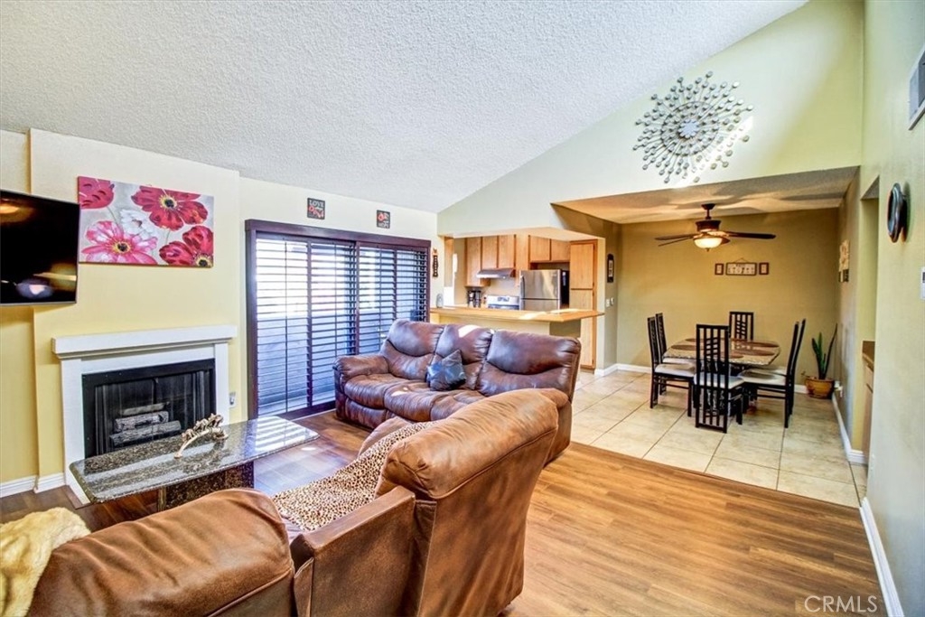 Beautiful 2 bedroom 2 bath condominium on the second level. Master bedroom and bath plus a second bedroom along with 2nd full hall bath. The bright kitchen has stainless steel appliances, bar high counter and is open to the living space. Dining room with a celing fan and additional bar with cabinets. Sliding glass door to the balcony has beautiful sliding wood shutters and offers an unobstructive view of the neighborhood and one of the three pools. The balcony also has a storage cabinet. Cozy up by your fireplace in the family room. Washer and dryer are included in addition to the mahogany bedroom set with dresser and two night stands in the secondary bedroom. Both bedrooms have white blinds. Condo includes central heating and AC. New wood laminate flooring throughout except for tile in the kitchen, dining room and bathrooms. You'll love the detached two car garage which also has shelves and an auto garage opener. The HOA has three pools for your enjoyment. Two of them have a spa. Professional photos, drone shots and matterport tour coming in the next few days.