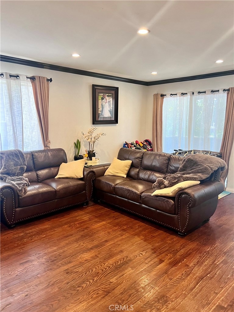 Beautifully laid out 2 bedroom 1 bath condo centrally located near shopping, gym, banks and freeways. Features oak wood flooring in living room and hall way, laminate wood flooring in the bedrooms, granite counter tops in kitchen. The master bedroom has direct access to the bathroom and it's closet includes custom made shelving. The entire unit was recently painted 1 year ago including the kitchen cabinets, the bathroom was completely remodeled and the AC and furnace units were replaced (brand new). The 2 car garage is beneath the unit (tandem parking) and the garage door drive mechanism was also upgraded less than a year ago. DON'T MISS OUT ON THIS BEAUTY!!!