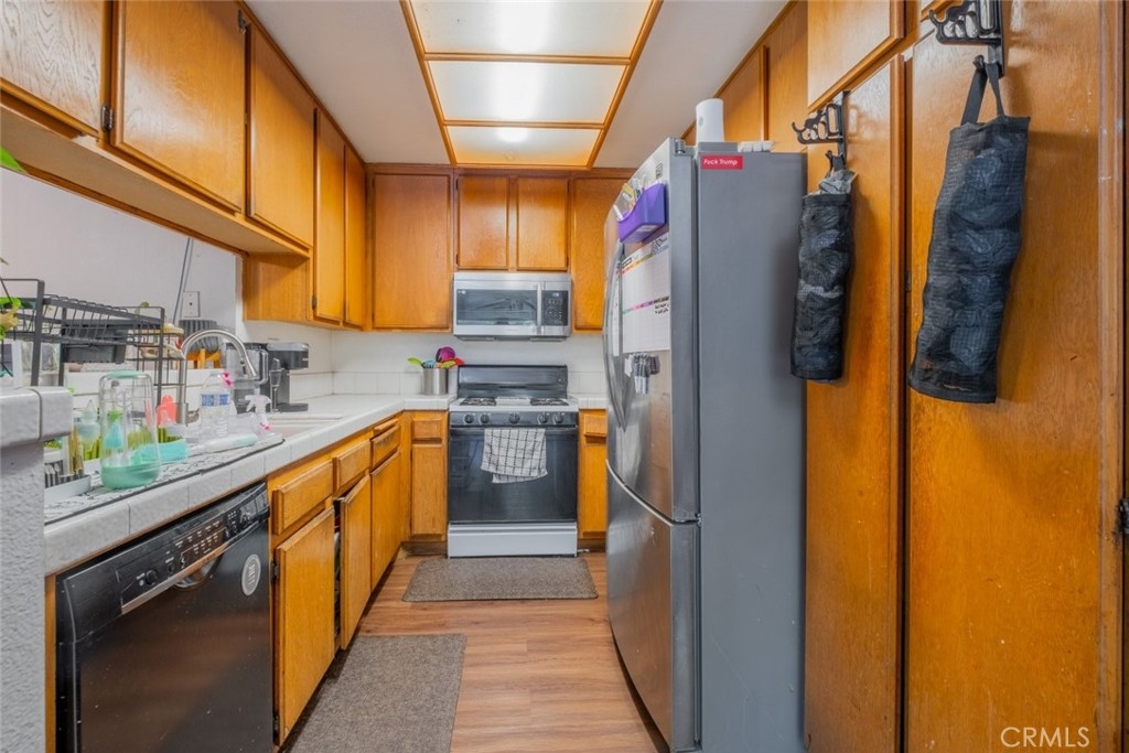 Welcome to 13144 Bromont Avenue #41, situated in Sylmar! First floor, corner unit! This beautiful 2 bedroom and 2 bathroom Townhome features an 864-SqFt open floorplan with laminate flooring, central AC and Heating, plus ample storage space. The unit has a spacious living room, dining room, and a bright kitchen. The kitchen is equipped with wood cabinets, tile countertops and nice appliances. Both bedrooms are bright and spacious. The unit comes with an enclosed tandem garage with a laundry room. The complex itself offers amenities such as a 1/2 basketball court, kids play area, and a pool. The complex has guest parking near unit just a short distance away from pool and spa. Centrally located in Sylmar, close to markets, dining options, schools and more.