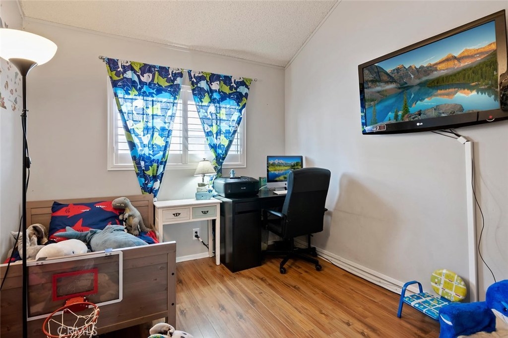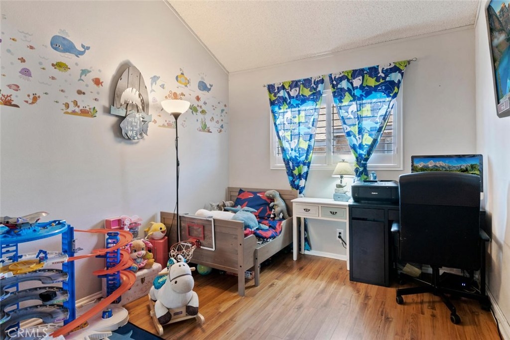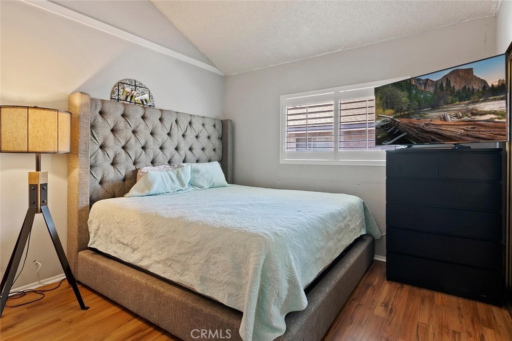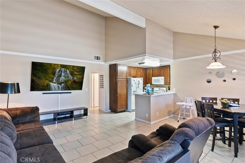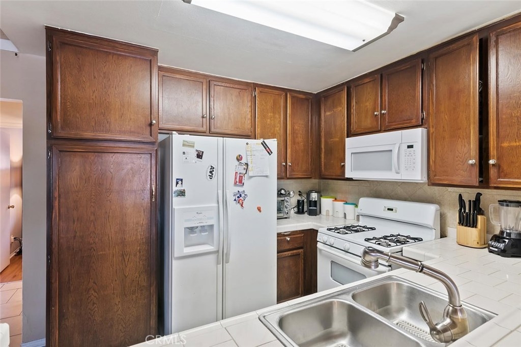 Better than Renting. Perfect for first time buyer or investor. Move in condition 2 bedroom, one level condo. Open floor plan encompassing a living and dining room area with vaulted ceiling. Kitchen with tile counter tops and tile flooring with a breakfast bar opens to the living and dining area. Tile flooring in the living area give this unit a modern appeal. Both bedrooms have engineered wood floors and ample closets. Full tub/shower combo bathroom. Plantation shutters further highlight this great unit. A detached garage accommodates 2 cars and houses the laundry facility. The complex also offers 2 pools, 2 spas, a play area for children and a sport court. Easy access to shopping and transportation make this the ideal location. A must see at this price.