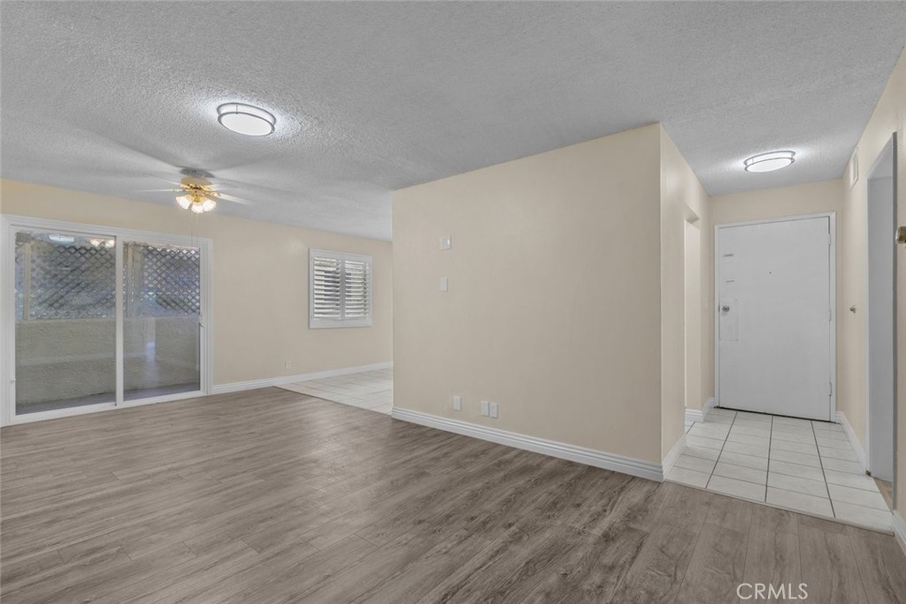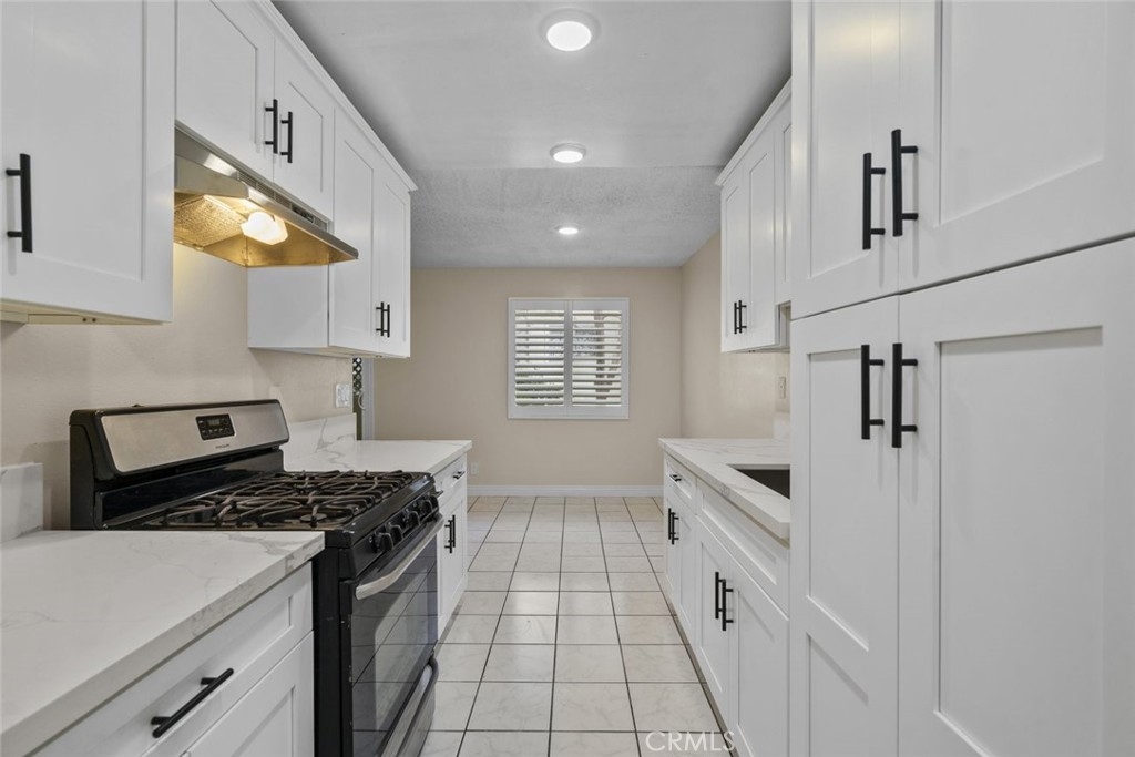 Residing within the gate community of Mountain Grove Villas in Sylmar is a charming condo for sale! Complete with fresh coats of paint, new plantation window shutters, elegant accent moldings, and a new electrical box with new outlets throughout, this 860-sqft home is ready for new memories. A modest tiled entryway allows straight away access to the newly updated kitchen featuring beautiful white cabinetry with black hardware, perfectly honed quartz countertops, and a large farmhouse sink, providing the perfect setting for culinary creations to crafted. Just off the quaint dining area is the open layout of the living room detailed with trendy grey tone laminate flooring and access to the private patio to allow for added entertaining space. New flooring has been installed in both spacious bedrooms and the common bathroom which includes a shower-tub combination plus a sizable vanity sink. Down in the private two-car garage is space for tandem parking, a convenient laundry area, and lots of room for extra storage. Residents are welcome to enjoy the glittering community pool and sunbathing areas provided by the HOA. A great location that is only minutes away from plenty of nearby shops, restaurants, schools like Sylmar High School, parks, convenient access to the 210 and 118 freeways, and more!