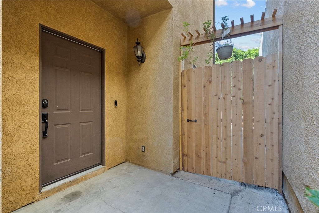 Great location of Sylmar! Take a look at this private, gated community with low HOA dues, which include water and gardener. Features includes a quest bathroom downstairs, bright airy floor plan that centers around a cozy fireplace. The large living room has ceramic tile that leads to an exterior back patio! Spacious kitchen with tall ceilings and another exterior door for easy outdoor eating. Some carpet upstairs and 3 spacious bedrooms with an upstairs linen closet, the primary bedroom suite comes with a dream walk in closet. The finished, 2 car garage has direct access to the house and contains the laundry area. This great home has a great price! Open house coming up! Please take a look!