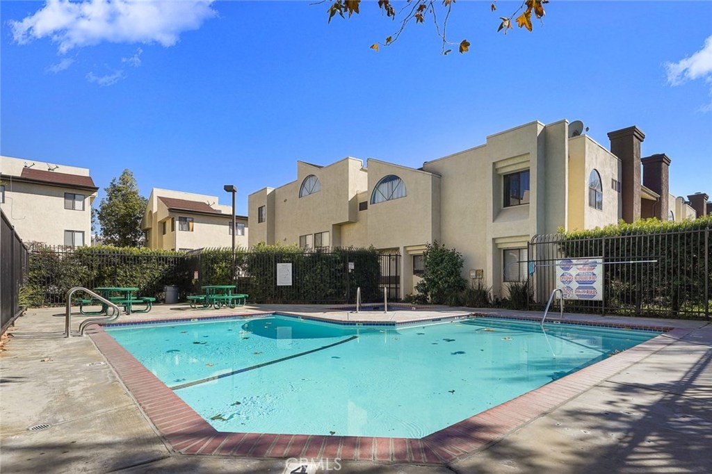 Updated 2-story townhome offering a modern vibe is located on a quiet cul-de-sac street. Unit is close to schools, shopping, local restaurants, mass transportation & major freeways. Welcome to North Pointe Villas. Pathway leads you to a contemporary court yard setting w/mature foliage. Step into a living room w/laminate flooring, recess lighting, trendy fireplace with raised hearth seat area plus an adjacent formal dining room perfect for your large social gatherings. Two large glass slider doors lead to a private outdoor open air patio area just waiting for summer bar-be que parties. Spectacular Chef's kitchen awaits your Buyer w/granite counter tops, wood cabinetry with ton's of storage space, built-on appliances plus another dining place perfect as a breakfast nook. The 1/2 downstairs bathroom will be well used by all your guests. Staircase leads the way to the upper level where you will find a master bedroom with soaring vaulted ceiling, walk-in closet and a private full bathroom with granite counter tops, wood vanity, double sinks, tile flooring and tub|shower enclosure with sub-way tiles. The 2nd bedroom also features soaring vaulted ceilings & a walk-in closet. Updated hall full bathroom has an over-sized vanity sink with tile flooring and also features sub-way tiles for tub|shower enclosure. Third bedroom has a large window overlooking the neighborhood & a wall to wall closet area. Garage offers 2-car tandem parking plus laundry area. Enjoy a community pool & spa.