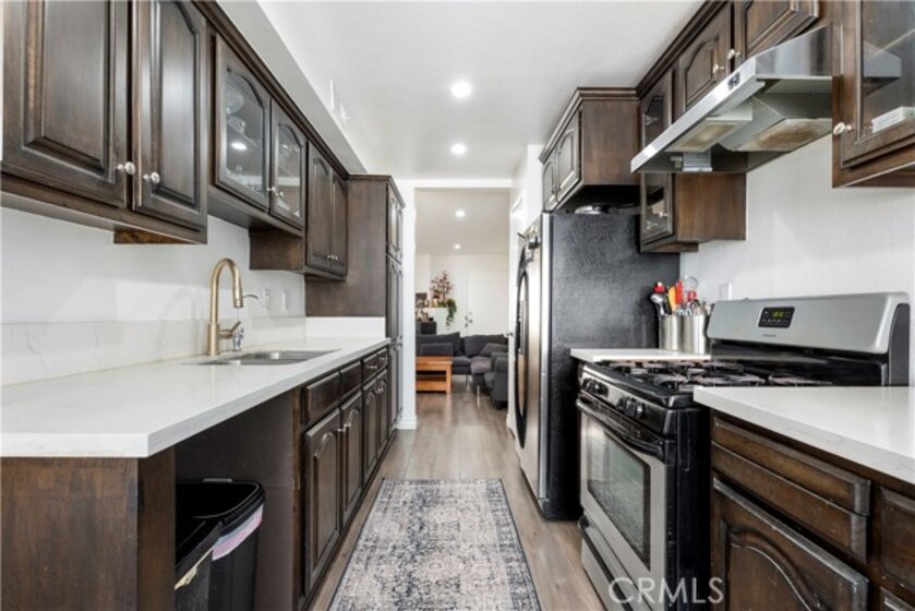 Welcome to this beautifully maintained, move-in ready condominium in a quiet and peaceful gated community in Sylmar. This rare unit offering Washer/Dryer hookups inside the private garage provides added privacy and natural light, creating a warm and inviting place to call home. Featuring 3 bedrooms and 2 bathrooms, the home offers a bright living area with laminate flooring, recessed lighting, a cozy fireplace, and a dining area that flows seamlessly. A sliding door opens to a private balcony just off the living and dining space, complete with a storage closet—perfect for relaxing or outdoor dining. The kitchen connects to a charming breakfast nook and features recessed lighting for a bright, functional space. All bedrooms are generously sized and filled with natural light, creating comfortable living throughout. The home is equipped with central A/C for year-round comfort. The primary suite includes dual closets, including a walk-in, and an en-suite bathroom with a walk-in shower, while the hallway bathroom offers a tub/shower combination. Additional features include two tandem parking spaces in a secure garage with ample laundry space, ample guest parking, and a well maintained community with a pool and Jacuzzi. Conveniently located with easy access to the 210 and 118 freeways, shopping, and dining. Condos like this rarely come available—don’t miss out!