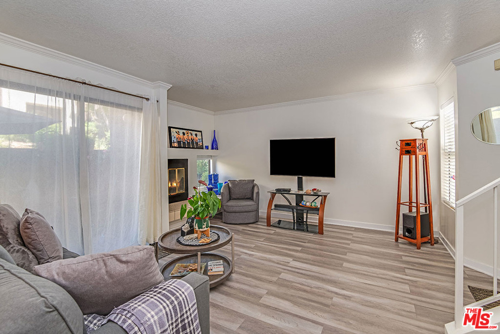 Two-level townhouse in a beautifully maintained gated community. Home has been upgraded tastefully throughout including a large kitchen with new cabinets & countertops, new modern flooring downstairs/kitchen/bathrooms, new hardwood flooring the master bedroom, new plush carpets on the stairs/hallways/2 bedrooms, and also includes new A/C and new Water Heater. Private patio and fireplace in the living room. Rare find with a private two-car garage and private laundry room! Community amenities include gated community guard, guest parking, manicured walkways, pool & spa.