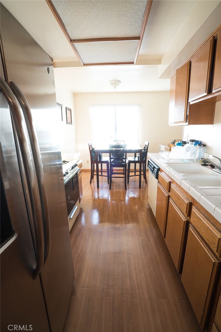This beautiful penthouse condo offers 2 bedrooms and 2 bathrooms with a Den/3rd bedroom located in one of the best locations in the complex. As you step in, you'll immediately feel the ample space in the living room and dining area with tons of natural light, fireplace, guest bathroom and access to the private patio. Located on a quiet cul-de-sac street in the gated NORTH POINTE VILLAS this is a wonderful opportunity to spend those cold winter nights by the Cozy fireplace, and those warm summer evenings on your own private balcony or enjoy the association pool to keep cool! This unit also offers a private 2 car tandem garage that has been finished and includes its own washer & dryer hook up. With tons of visitor parking, you can enjoy entertaining year round! If that isn't enough, the complex also provides beautiful gardens that are professionally landscaped. Likewise, the HOA covers water ,trash, and EVEN earthquake insurance! Act Fast! This home will not last! Centrally located near retail shopping, restaurants and convenient access to major freeways. Call to schedule your showing TODAY!
