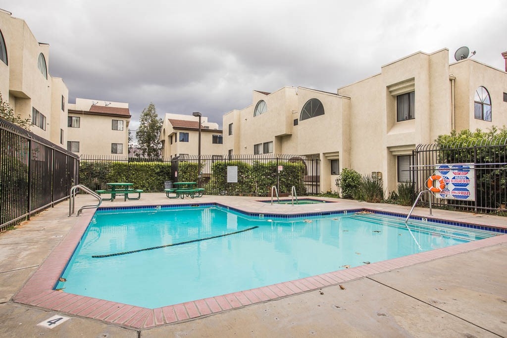 This beautiful *NORTH POINT VILLAS* TOWNHOUSE** community is located on cul-de-sac in Sylmar* Here are just a few of its many fine features: Step into a flowing 1,243 square foot open concept floor plan that is in Move In Condition* The spacious living room is bathed in natural light and has direct deck access and a cozy fireplace with raised hearth* The family cook is going to appreciate the kitchen's abundant cabinets, built-in appliances, tile counters, easy care tile flooring, plus the convenience of adjoining breakfast area and formal dining room with its direct patio access* 3 bedrooms; The master suit has a large walk-in closet, and private bathroom with large mirrored vanity with "His & Her" sinks* A total of 2 1/2 bathrooms; 1/2 bath is located on the first floor for your guest* Central heat & air for year around comfort* Laundry functionally located inside the private 2 car tandem garage* You'er going to experience "Resort Style Living" enjoying the lush greenbelt, sparkling pool and soothing spa* Close to schools, great shopping, mass transportation, and major freeways *