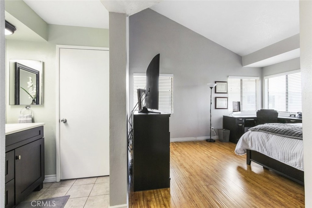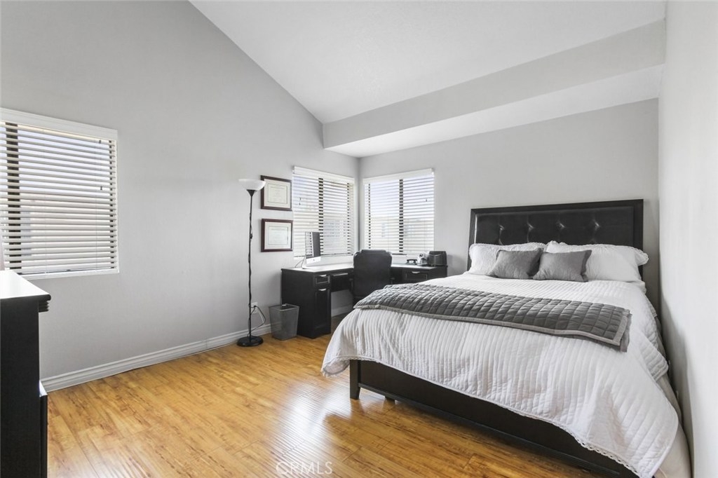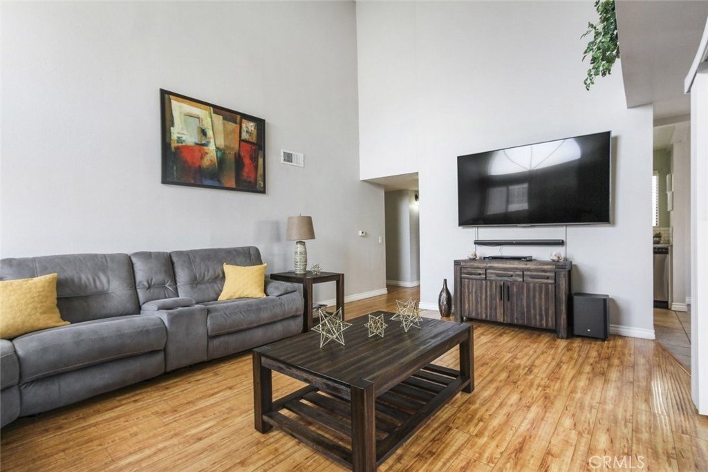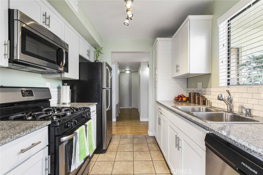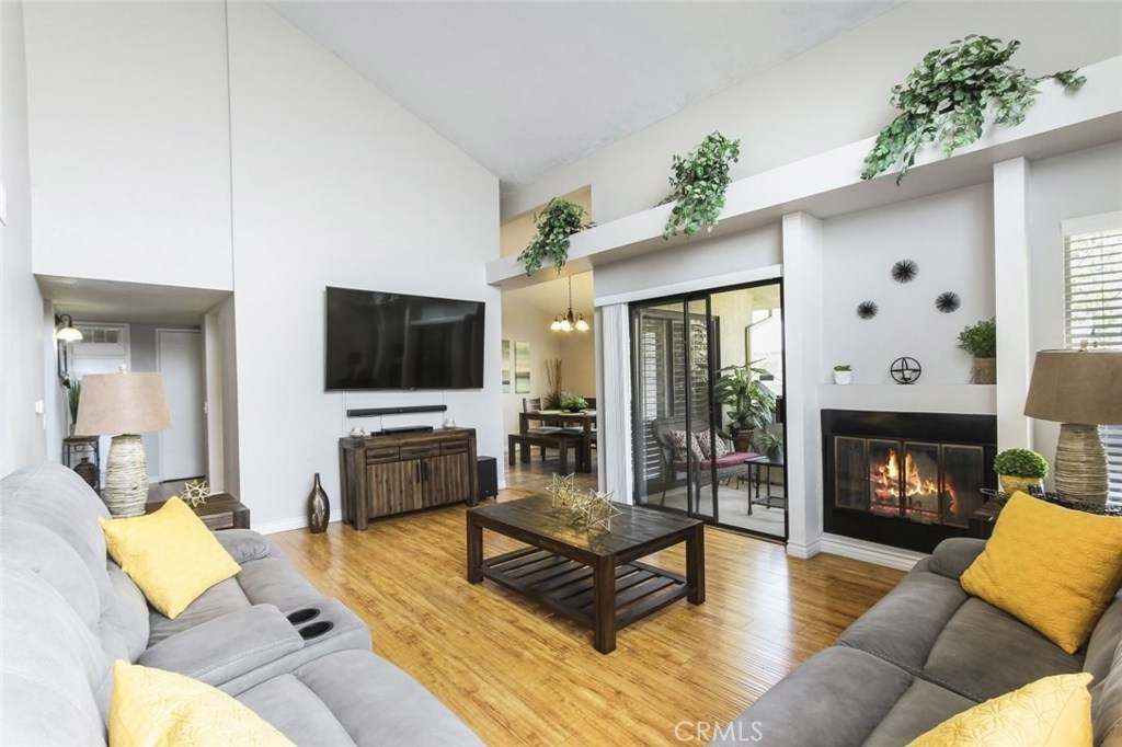 Perfect Condo nestled on a Cul-de-Sac street in Sylmar, Recently renovated four years ago, featuring a floor-plan of 1,146-SQFT of living space with 3 bedrooms and a 2-car garage! Upon entering the unit, you are greeted with a well-illuminated spacious living room with a soaring high ceiling, tons of natural light, a fireplace and sliding glass doors that lead out to your private balcony with a tree top view. Through the dining area find a charming renovated kitchen equipped with stainless steel-appliances and granite counter-tops with decorative tile back-splash. All 3 bedrooms are spacious with ample closet space. The larger of the rooms is a Master en-suite that features a private bathroom with dual vanities. Throughout the unit find sleek wood and tile flooring, baseboard moldings, high ceilings and recessed lighting. Located in a gated community with tons of visitor parking, as well as a community pool with a spa.