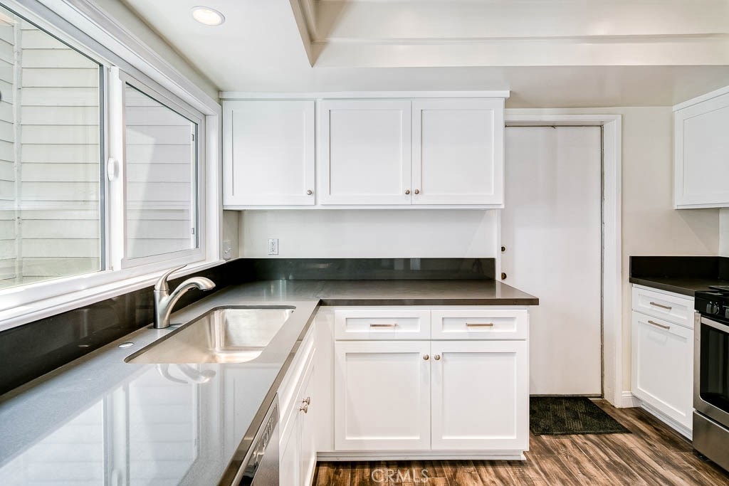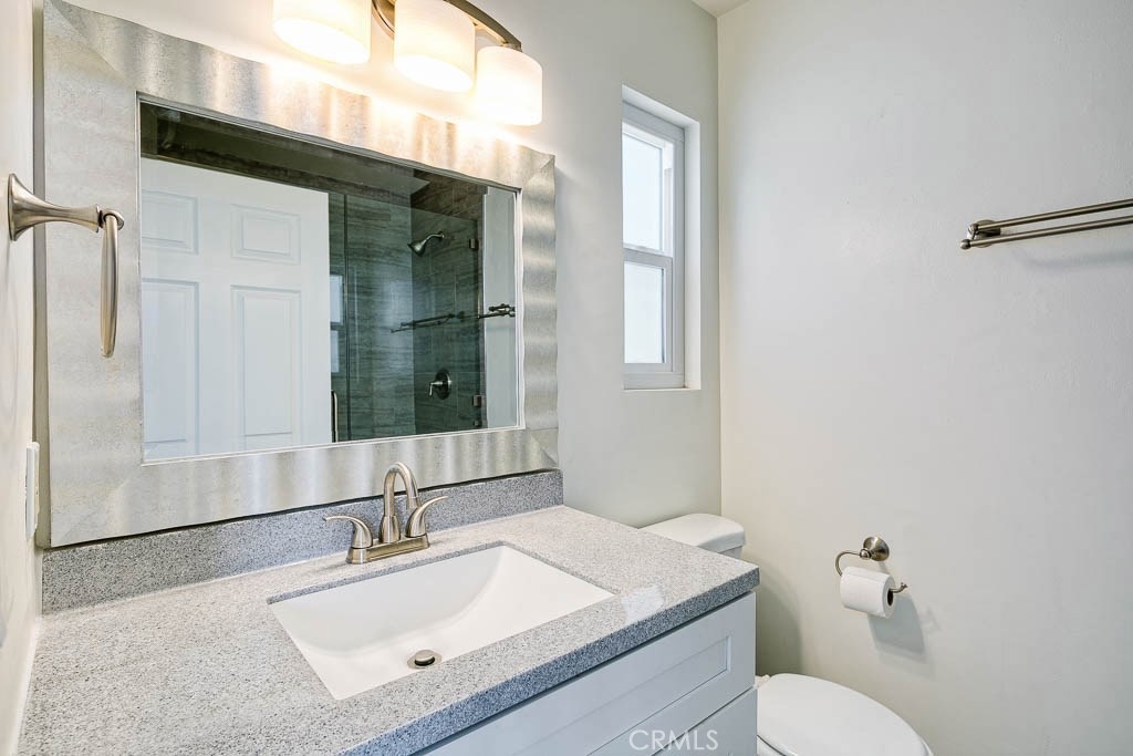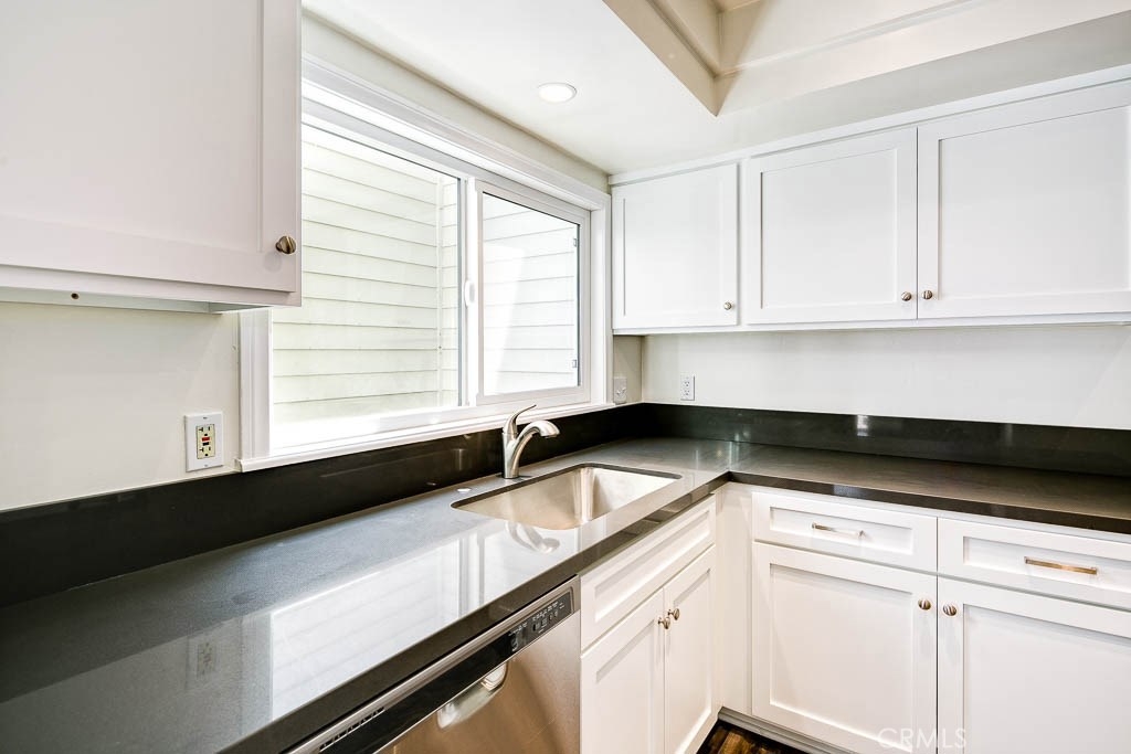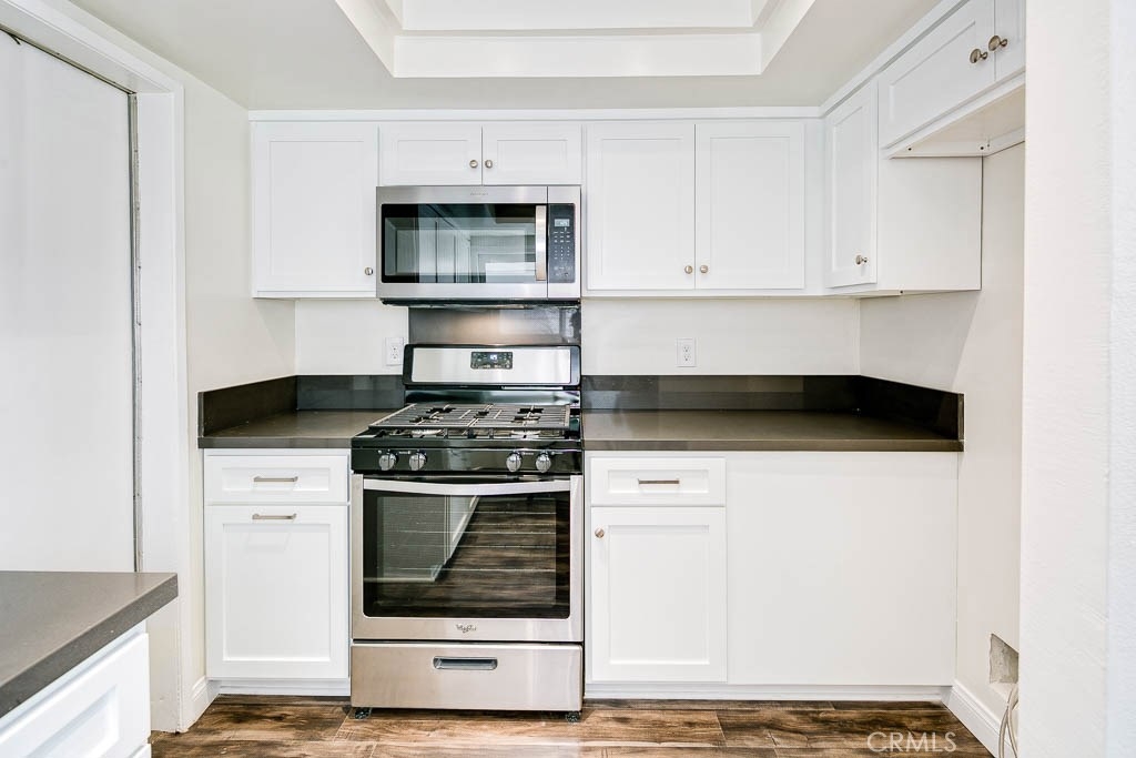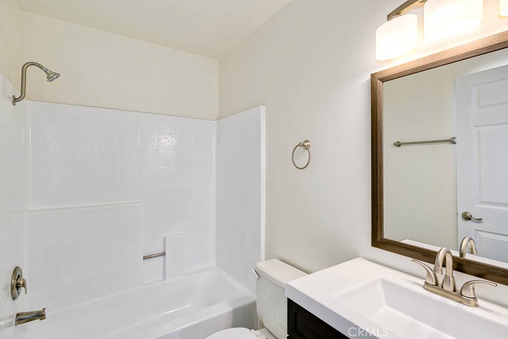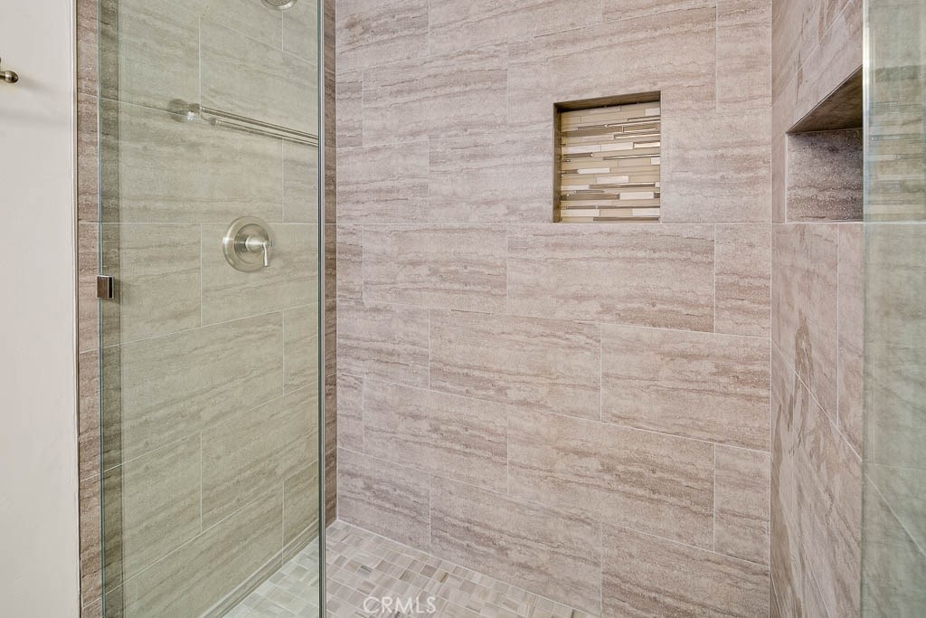 Just move right in. No detail was spared. All new floors. New dual panel tinted windows, new sliding dual panel doors, freshly painted, new interior doors. Linen closet. Recessed lights. Tiled entry. Gas fireplace with tiled hearth. Central air and heat. Step down living room with access to front patio. Dining area with access to private patio. All baths and kitchen have been remodeled. Kitchen has new dishwasher/ microwave/ stove / oven. New maple cabinets with soft close. Lots of storage. Quartz countertop. New Deep stainless steel sink. 2 upstairs bedrooms with separate baths. One with an oversized tile shower. One with shower over a tub. One bedroom with walk in closet and extra closet. Guest bathroom downstairs. Attached 2 car garage with laundry area and direct access to kitchen. Automatic garage door opener. Community pool and spa. Guest parking. Security entrance to garages.
