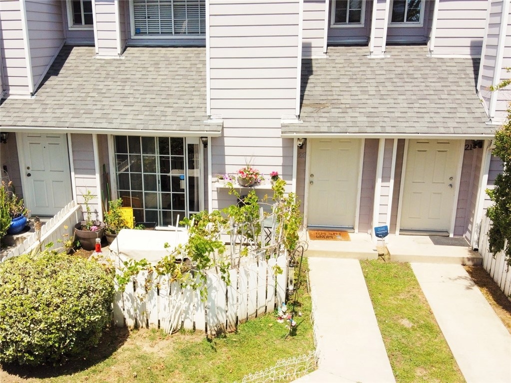 A security gated complex is the location for this quiet rear unit set back from both streets. Two second floor master suites with their own private baths are a special feature of this unit. The front door leads to a foyer and the living room, which has a wood burning corner fireplace and sliding glass door access to the enclosed front yard and patio. Adjacent the living room is a large dining area that has a sliding glass door access to the inner courtyard. The kitchen and guest bathroom finish the first floor. The kitchen offers direct access to the attached 2 car garage with laundry hook-ups for washer and dryer. The complex has a child safety fenced pool and spa. There are secure guest parking spaces close to the subject unit.