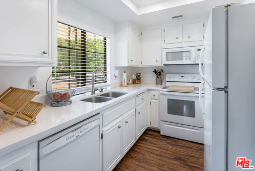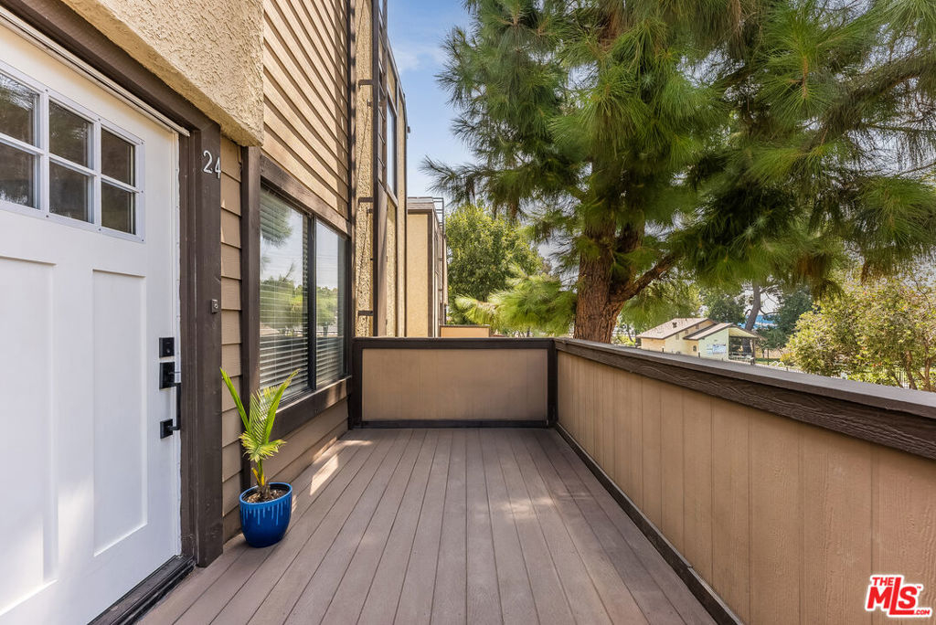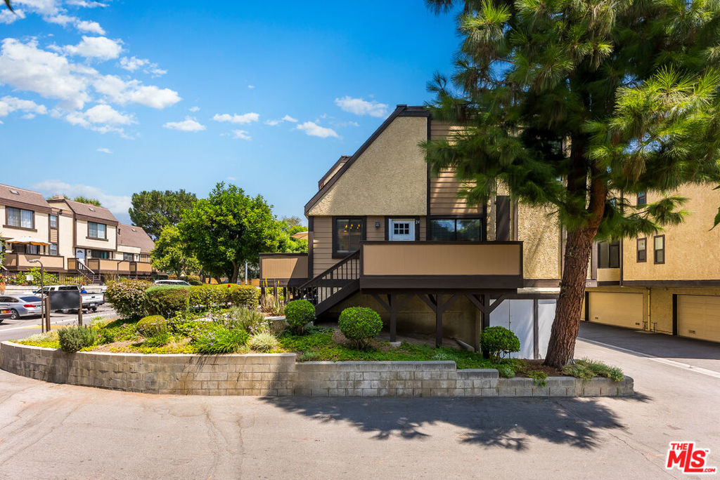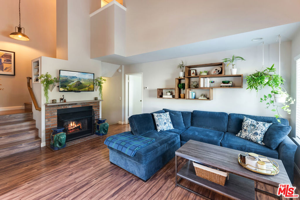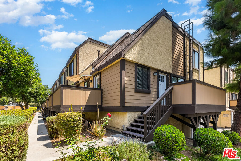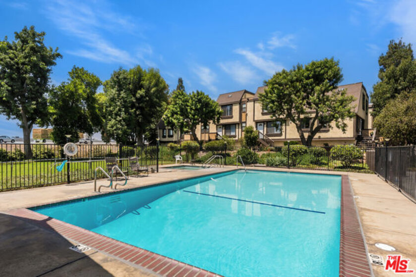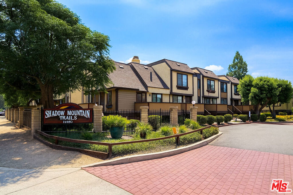 Welcome to this beautiful two-bedroom, two-bathroom end-unit townhouse located in the Shadow Mountain Trails community of Lakeview Terrace. With vaulted ceilings, abundant natural light, and windows on three sides, this home offers a bright and airy atmosphere throughout. Step into the spacious great room featuring a cozy brick fireplace and an open-concept layout that seamlessly connects the living area, dining space, and the bright kitchen. The kitchen has been tastefully updated with white quartz countertops, crisp white cabinetry, and offers a lovely view of the front patio. The main level includes a comfortable bedroom with its own en-suite bathroom. Upstairs, the private primary suite offers peace and quiet, complete with a second en-suite bathroom and generous closet space. Enjoy two outdoor patios, ideal for relaxing or entertaining, along with a convenient attached two-car garage that includes in-unit laundry. With only one shared wall, this home provides privacy and views of trees and greenery from every room. Community amenities include a pool and spa, guest parking, and even stables for horse lovers. You'll love the convenient location near Hansen Dam Recreation Center, the 210 freeway, and nearby hiking and equestrian trails.