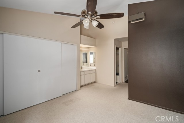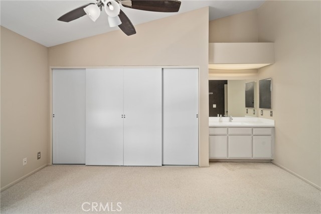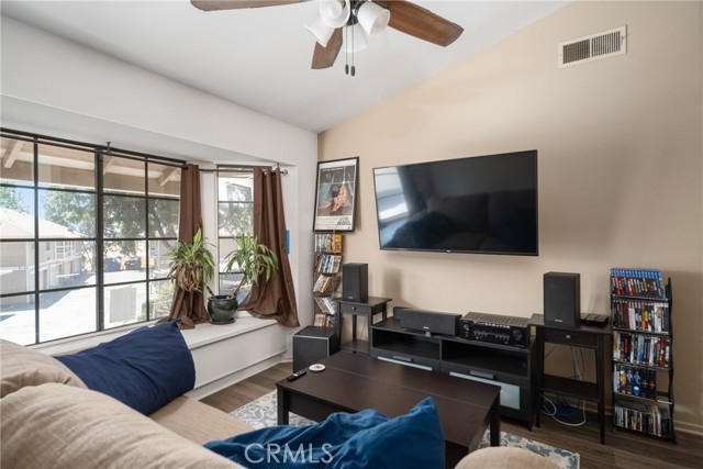 This modern, updated condo is in a desirable, gated community and located just inside the gate. It offers a separate living and family room with a bay window for seating in the living room. A very open floor plan showcases the modern kitchen with Corian counters, 5 burner stove, newer appliances and beautiful cabinets. Beautiful wood laminate flooring, water heater, closet doors are also newer. There are fans in all rooms. Bedrooms are spacious and each has its own bathroom. The spacious balcony overlooks a cascade of gorgeous landscaping. 2 covered and shaded parking spaces are also included.