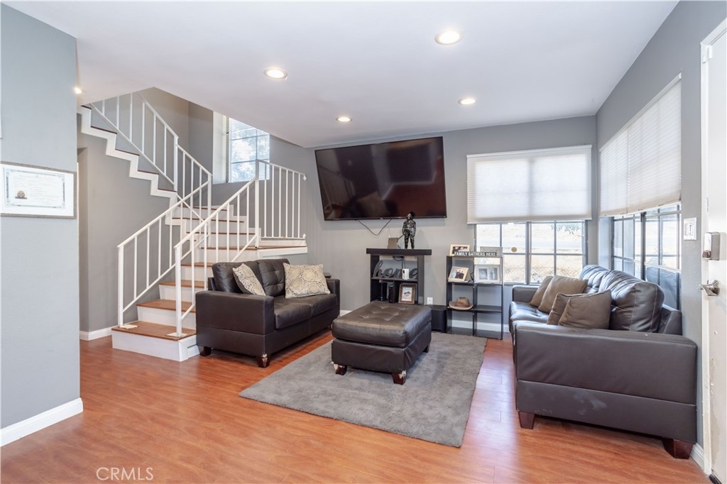 This beautiful, two-story townhouse is the perfect place for you and your family - HOA pays for all water, FHA/VA approved & no special assessments. With only one shared wall, this end unit provides plenty of privacy and space. You'll love the recessed lighting, large windows, and crown moldings that add a touch of elegance to the home. The open living area with wood laminate flooring is perfect for relaxing or entertaining guests. The updated kitchen features granite countertops, white cabinetry, stainless steel appliances, and a subway tile backsplash - making it easy to cook up your favorite meals. You'll also love the direct access from the garage into the kitchen - perfect for unloading groceries or bringing in laundry baskets. Both bedrooms are upstairs and the master suite has an attached bath, large closets, and ceiling fans. Recently painted throughout, smooth ceilings, newer carpet, and newer electrical outlets make this home move-in ready. The community amenities include a pool with a spa and well-kept grounds - perfect for enjoying a summer day or evening. Close to freeways, shopping, entertainment venues, and nature preserves - this home has it all! Don't miss out on this incredible opportunity - call today to schedule a tour!
