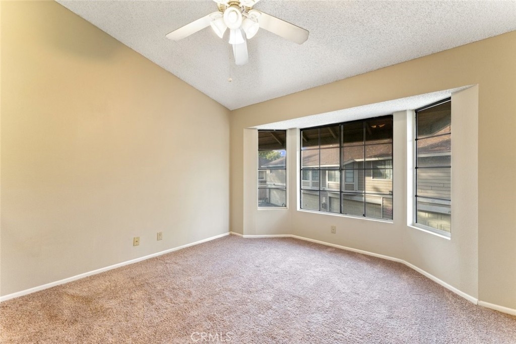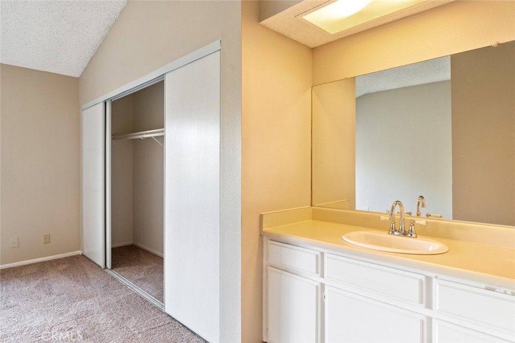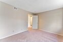 In the residential flats of Sylmar, surrounded by schools, parks and golf courses, is a 996 sqft, 2-bedroom, 2-bathroom condominium move in ready for the next lucky buyer to make their mark. Stairs that lead to the front patio area, where outdoor furniture can be set up, and upon entering you are greeted with carpet flooring throughout the cozy yet spacious unit. Further down the unit is the family room and is perfectly situated to be used as a dining room as well, due to easy access to the kitchen. The living room, which is located immediately as you enter the unit, is flooded with natural lighting and also has easy access to the kitchen. The combination of the rooms being on both sides of the kitchen makes it a very practical entertainer’s layout and is perfect for hosting guests. A hallway directly adjacent to the kitchen, leads to two bedrooms, both of which have built in closets and both of which have an en suit bathroom. Home also has an individual closet with a washer/dryer included and access to a 2 spot detached carport parking.