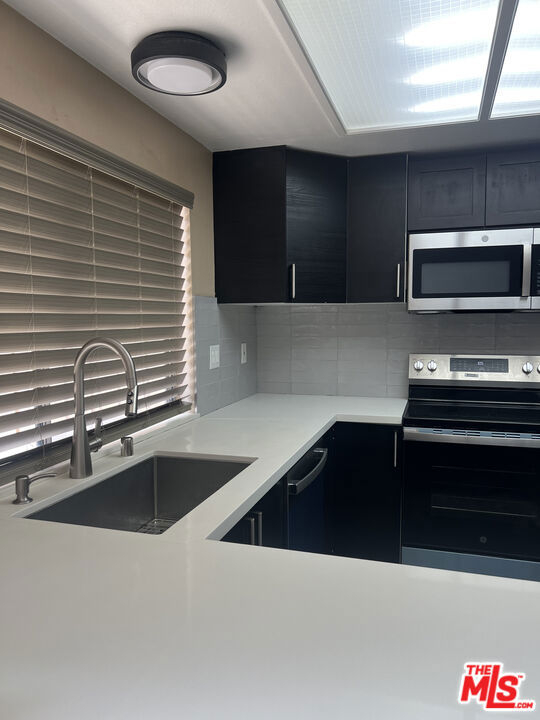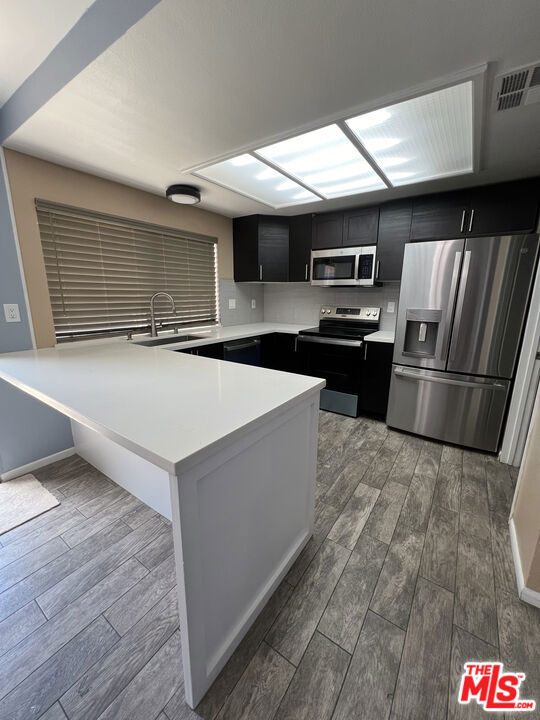 Turn-key with easy access to 210 Freeway! Close to Olive View. Townhome in a quiet, gated community with manicured landscaping, a sparkling pool and spa, plus ample guest parking. This freshly painted 3-bedroom, 2.5-bath home is fully updated with all new flooring, modern light fixtures, and a beautifully refinished fireplace. The kitchen features quartz countertops, refinished soft-close cabinetry, stylish ceiling fan, and brand-new stainless steel appliances, including refrigerator, stove, oven, and microwave. Bathrooms showcase new sinks, faucets, towel racks, and slow-close toilets. Additional upgrades include a brand-new water heater, new ceiling fans in bedrooms, and abundant storage with linen and closet space throughout. A spacious garden window looks out to the large enclosed patio, perfect for entertaining, and a private double garage provides direct access. Laundry room with washer and dryer hookups. PLUS, insurance included in HOA. Truly move-in ready!
