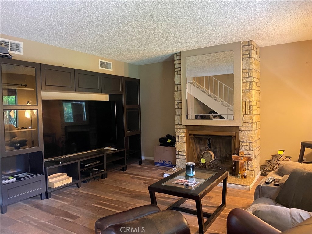 Charm that just doesn't say enough with words. Nestled at the back of the development the enchanting walk paths that lead through the green tree-filled walkways to your front door. It is like being in a forest town. As you enter the home the living room with fireplace creates a great living space to gather. The downstairs laundry room and bathroom are a plus. As you continue downstairs the kitchen opens up to the breakfast area and laundry room. Kitchen with a peninsula island bar with open concept with granite countertops gazes out to the private sun-filled LARGE patio/backyard area. The patio is enclosed and leads to the private two-car garage with storage. This lovely back unit is quiet and level. The two Master Suite floorplan gives ample space and privacy. Large and spacious this home is a true find and will not last long. Come customize to your taste and colors. A little TLC or renovation will take this home to a whole new level. Gated community with a wonderful community pool.