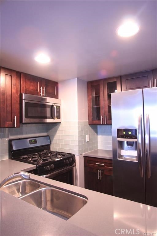 This is a stunning, recently remodeled home with exquisite craftsmanship. There are 2 large master bedrooms with vaulted ceilings and in suite bathrooms. This condo includes newer stainless steel appliances, newer kitchen cabinets, newer laminate hardwood floors, new quartz counter tops, new bathroom vanities, new crown moulding, new recessed lighting with dimmer switches, newer finished plumbing, newer kitchen tile backsplash, newer bathroom tile floors, newer mirrored closet doors, newer paint, newer moulding throughout the home and much more! Laundry room conveniently located upstairs. There is also a 2 car attached garage, view of the jacuzzi, and additional gated parking. The complex will be rehabbed with new paint and new entry intercom system soon!
