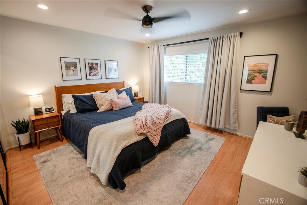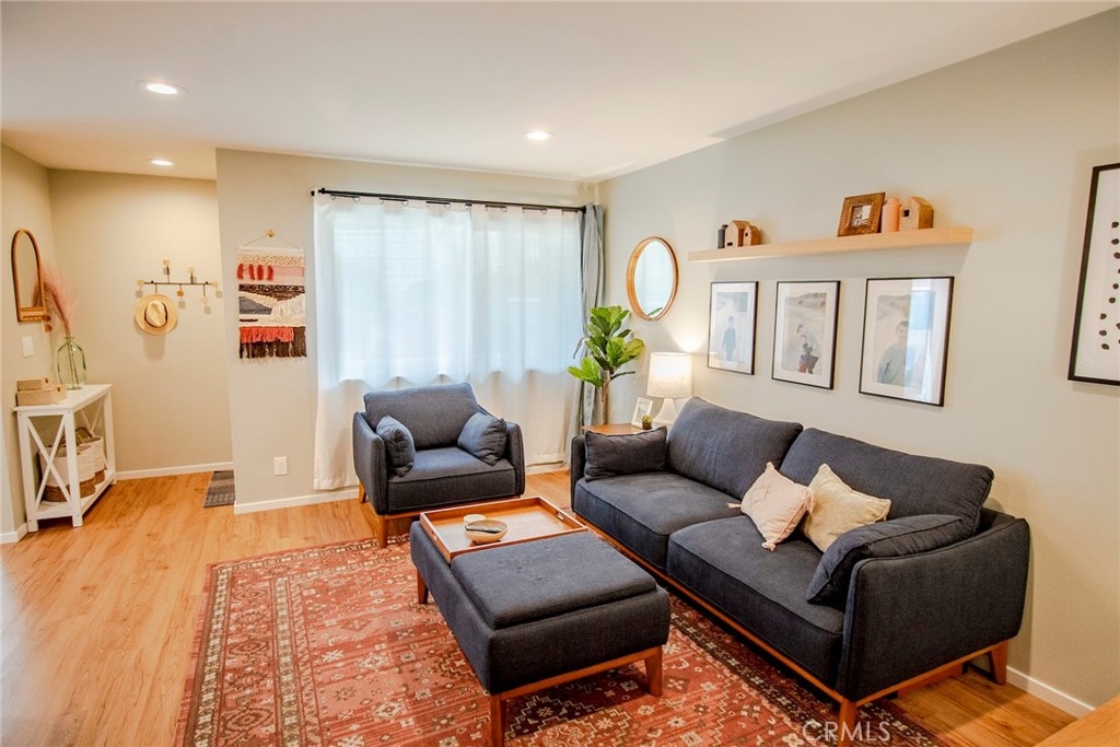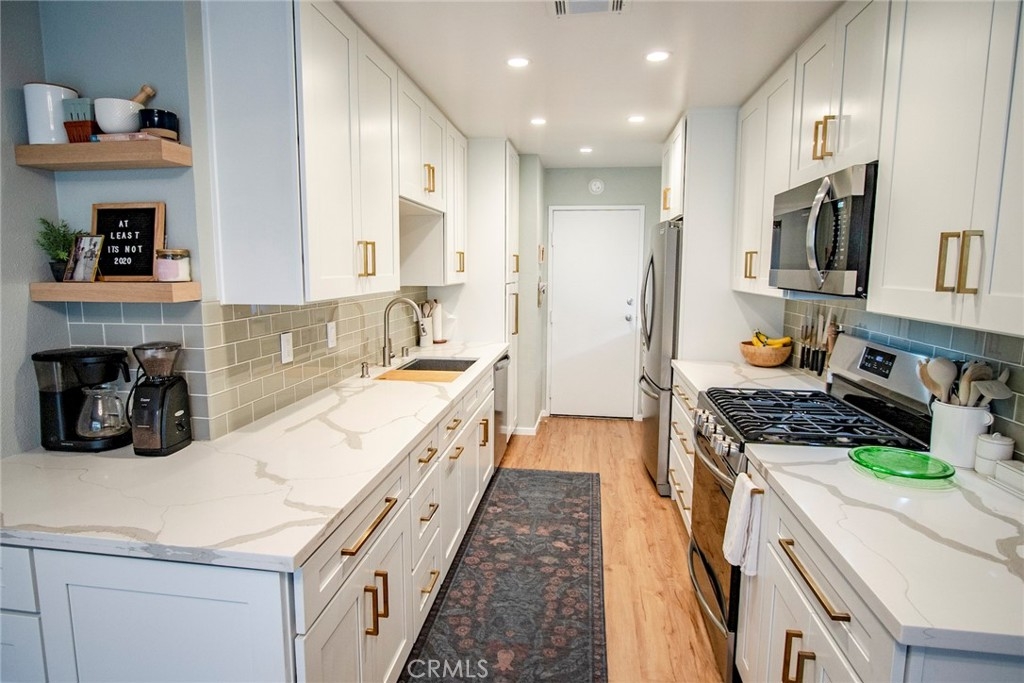 When you arrive at this complex, you will love the well maintained and beautifully manicured grounds. Lots of parking for your guests too. Stroll up the walkway to the front of this darling home. As you enter into the small foyer you will fall in love. Just about everything has been upgraded in this sweet home. The flooring is gorgeous and makes the downstairs feel huge. Large living area with lots of storage, a remodeled kitchen adjacent to a lovely breakfast nook and a cute little patio, making BBQ's or hanging outdoors so easy! The kitchen is gorgeous with its quartz counters, beautiful cabinetry, and stainless appliances. Lots of counter space for cookie decorating and meal preparing. A remodeled powder room is located on the main floor for your convenience as well as a nice size coat closet. Ascend the newly carpeted stairs to the upper level where you will find three very spacious bedrooms, a hall bathroom and a master bathroom. All have been freshly painted and renovated making this home look like a model. The garage is attached, through the kitchen, for convenient access. Every detail in this home makes it so special. The park is just across the street, the 118 freeway just down the street, shopping nearby and close to Mission College. A must see.