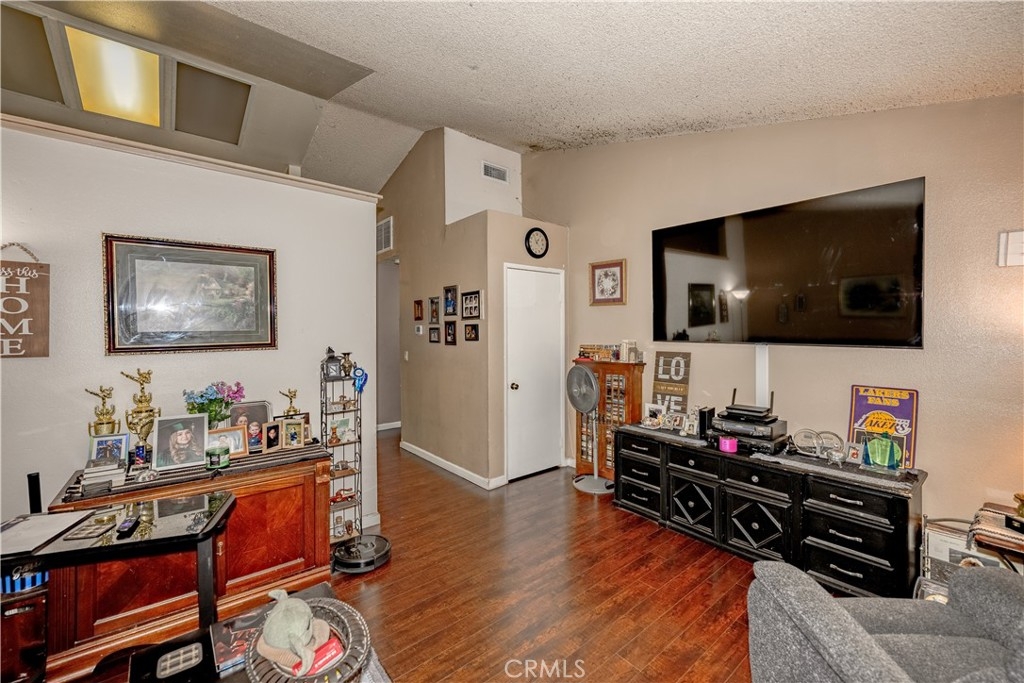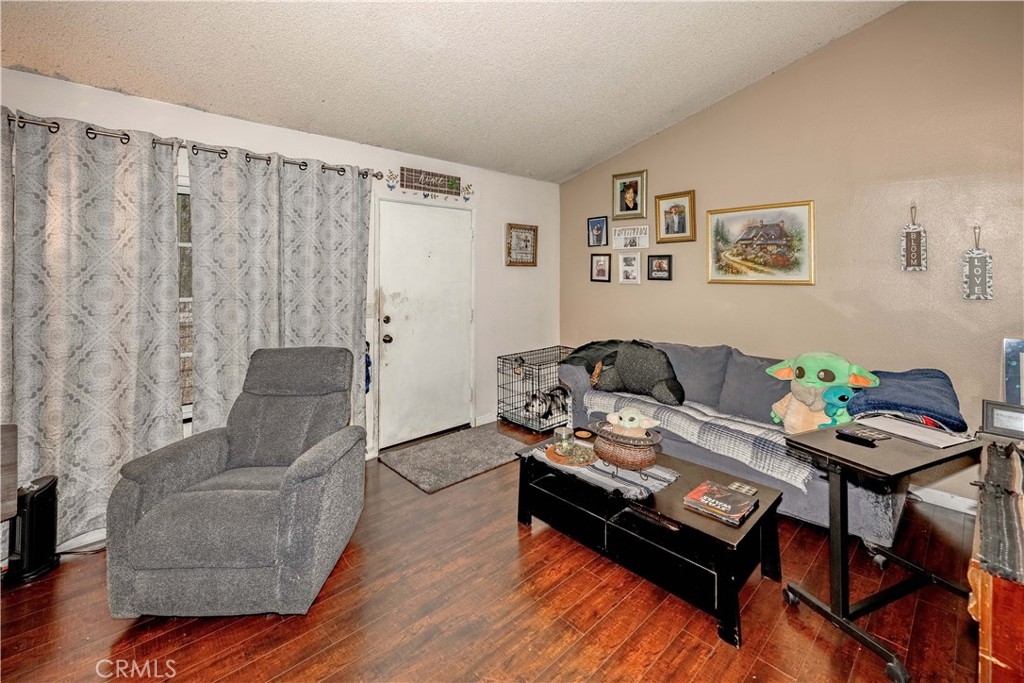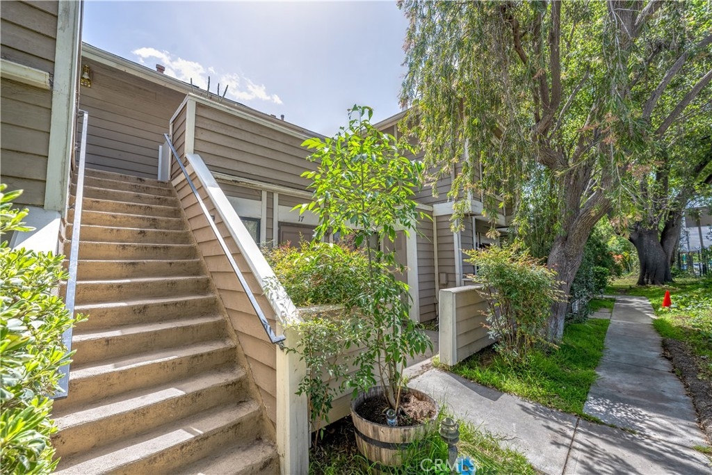 This charming 2-bedroom, 2-bathroom condominium offers a welcoming layout designed for comfort and convenience. A set of stairs leads to the front patio, an ideal space for outdoor seating. Upon entering, you are greeted by laminate flooring that flows seamlessly throughout the cozy yet spacious unit. The living room, bathed in natural light, sits at the front of the home with easy access to the kitchen. Further inside, the family room provides a versatile space that can also serve as a dining area, thanks to its convenient proximity to the kitchen. This thoughtful layout, with rooms positioned on either side of the kitchen, creates an effortless flow—perfect for entertaining guests. A hallway adjacent to the kitchen leads to two well-appointed bedrooms, each featuring an en-suite bathroom for added privacy and convenience. Additional highlights include an in-unit washer and dryer tucked away in a dedicated closet, as well as access to a detached carport with two designated parking spaces.