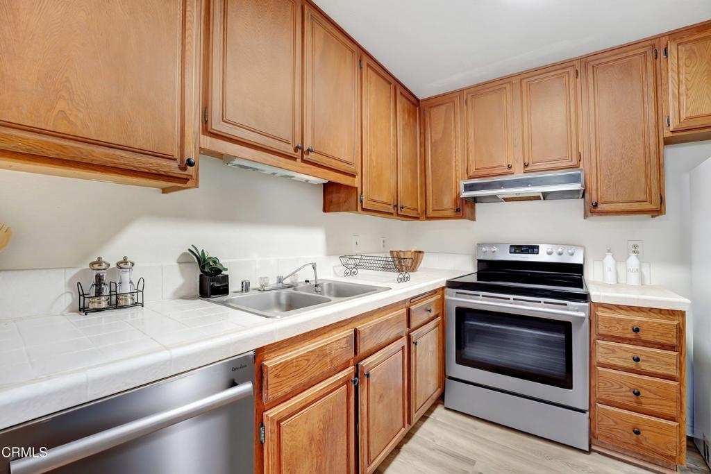 This beautifully updated 2 bedroom, 2 bathroom condo in Sylmar offers a fresh and modern living experience with stylish finishes and a functional layout. The open-concept living and dining area features large windows that bring in natural light, sleek new flooring throughout, and a cozy fireplace that adds warmth and charm to the space. The kitchen is well-equipped with stainless steel appliances (to be installed by 4/18/25), generous cabinetry, and tile countertops, perfect for everyday cooking and entertaining. The spacious primary bedroom boasts a large picture window and an en-suite bathroom, while the second bedroom offers flexibility for guests, a home office, or additional storage. With clean, contemporary interiors and an inviting atmosphere, this condo provides both comfort and convenience in a desirable community.