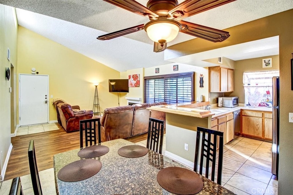 Beautiful 2 bedroom 2 bath condominium on the second level. Master bedroom and bath plus a second bedroom along with 2nd full hall bath. The bright kitchen has stainless steel appliances, bar high counter and is open to the living space. Dining room with a celing fan and additional bar with cabinets. Sliding glass door to the balcony has beautiful sliding wood shutters and offers an unobstructive view of the neighborhood and one of the three pools. The balcony also has a storage cabinet. Cozy up by your fireplace in the family room. Washer and dryer are included in addition to the mahogany bedroom set with dresser and two night stands in the secondary bedroom. Both bedrooms have white blinds. Condo includes central heating and AC. New wood laminate flooring throughout except for tile in the kitchen, dining room and bathrooms. You'll love the detached two car garage which also has shelves and an auto garage opener. The HOA has three pools for your enjoyment. Two of them have a spa. Professional photos, drone shots and matterport tour coming in the next few days.