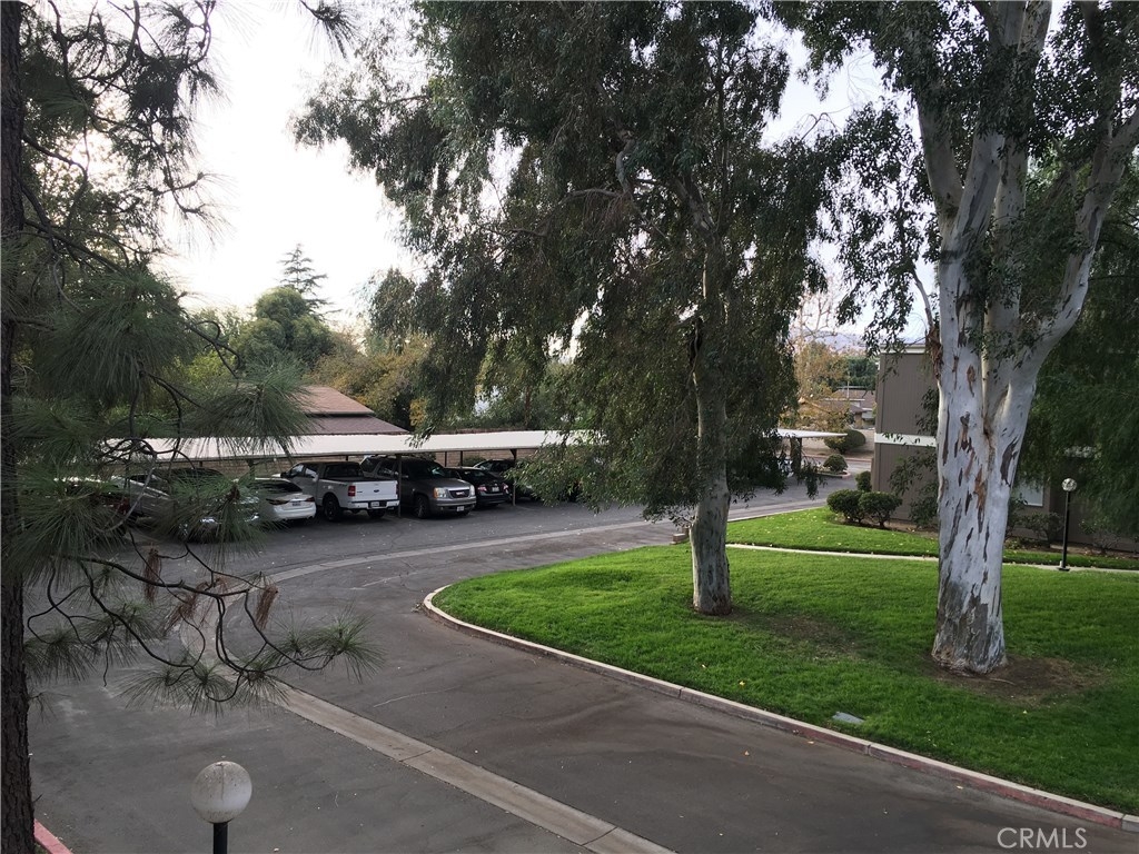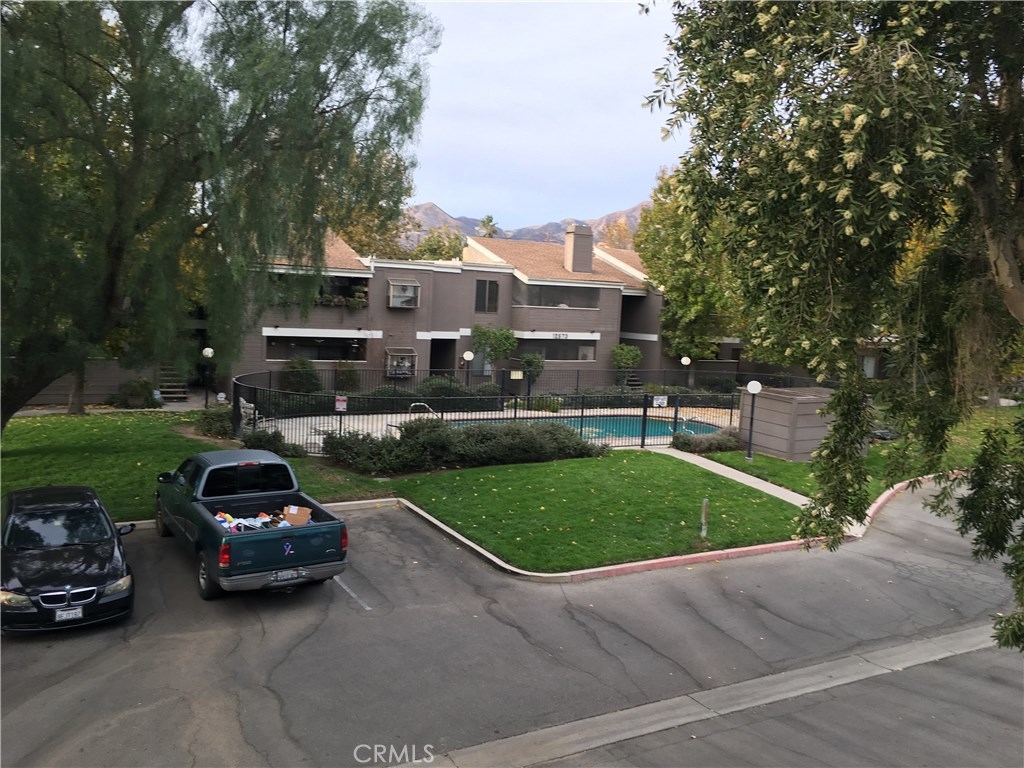 Beautiful peek-a-boo Mountain View’s from balcony which overlooks the pool, Lush green grass and huge shade trees! This lovely upstairs unit has Cathedral ceiling and fireplace in living room, Tile flooring everywhere except the master bedroom which has new carpeting. Newly redone kitchen cabinets and kitchen and bathroom countertops! New energy efficient windows throughout. New air conditioner. Freshly painted bedrooms with mirrored wardrobe doors. New outlets provide USB charging in all rooms, new light switches, and new smoke detector/carbon monoxide detectors. Detached 2 car garage. Refrigerator, washer & dryer included! This updated two bedroom one bath condo is ready for immediate occupancy.