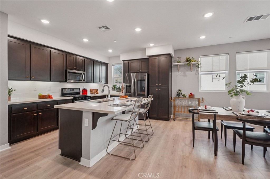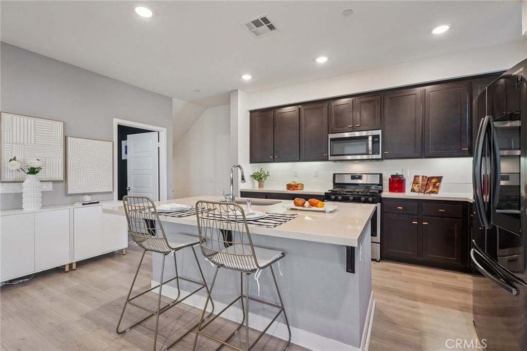 Welcome to this beautifully maintained end-unit townhome located in the desirable Tovara West community built by Williams Homes, a respected California homebuilder known for modern energy-efficient townhome developments. Built in 2020, this home offers approximately 1,440 sq ft of bright, open living space with 3 bedrooms, 2.5 bathrooms, and an attached oversized two-car garage. The thoughtfully designed floor plan features a spacious living area that flows seamlessly into a modern kitchen complete with rich Kona cabinetry, Quartz countertops, a large center island, and abundant natural light. Stainless steel appliances and upgraded flooring throughout add to the home’s contemporary feel, with durable wood-style laminate on the main living level. On the third level, you'll find 3 spacious bedrooms and laundry closet conveniently located in the hallway. Two of the bedroom closets have been fully upgraded for enhanced storage and organization. The home also includes the efficiency of a tankless water heater. Ideally positioned next to the community pool and spa, guest parking, and dog park, this home offers both convenience and lifestyle. Residents also enjoy access to a picnic area and tot lot, creating a welcoming neighborhood environment. Located just minutes from shopping, dining, and major freeways including the 210, 118, 14, 5, and 2, this property provides easy access throughout the San Fernando Valley and beyond. Don’t miss this opportunity to own a modern, move-in ready home in a prime Sylmar location.