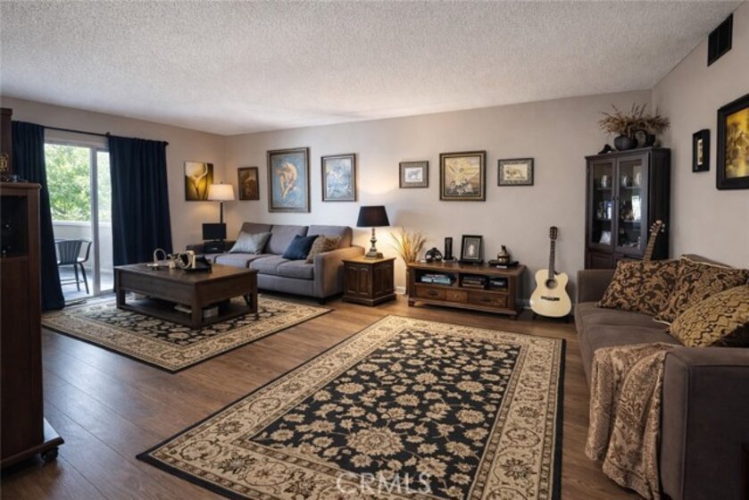 Welcome to this well-maintained 2-bedroom, 1-bathroom end-unit condo ideally located in the heart of Sylmar. Enjoy two spacious bedrooms and a full bathroom. Step outside to your own private patio. Include a shared garage with two parking spaces, extra storage, and an in-garage washer & dryer—both included with the unit. The community offers great amenities such as a sparkling pool and spa, all with a low HOA that covers water and trash.