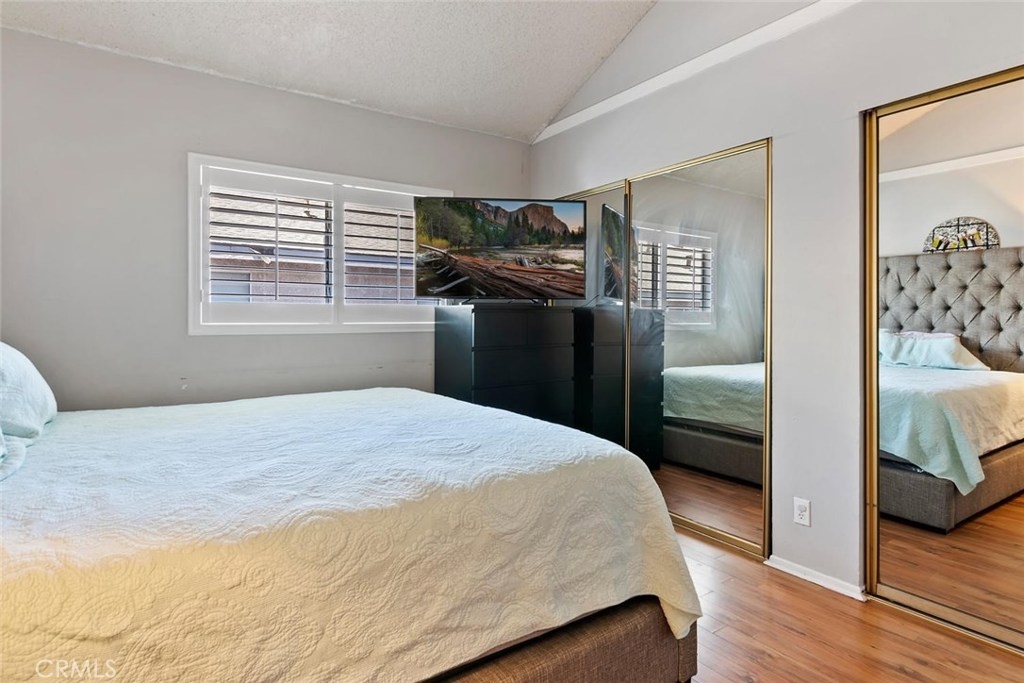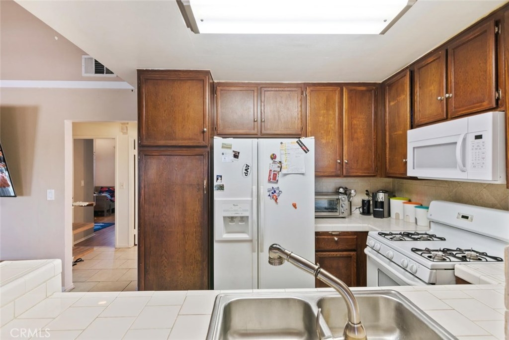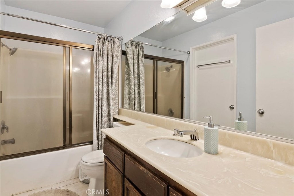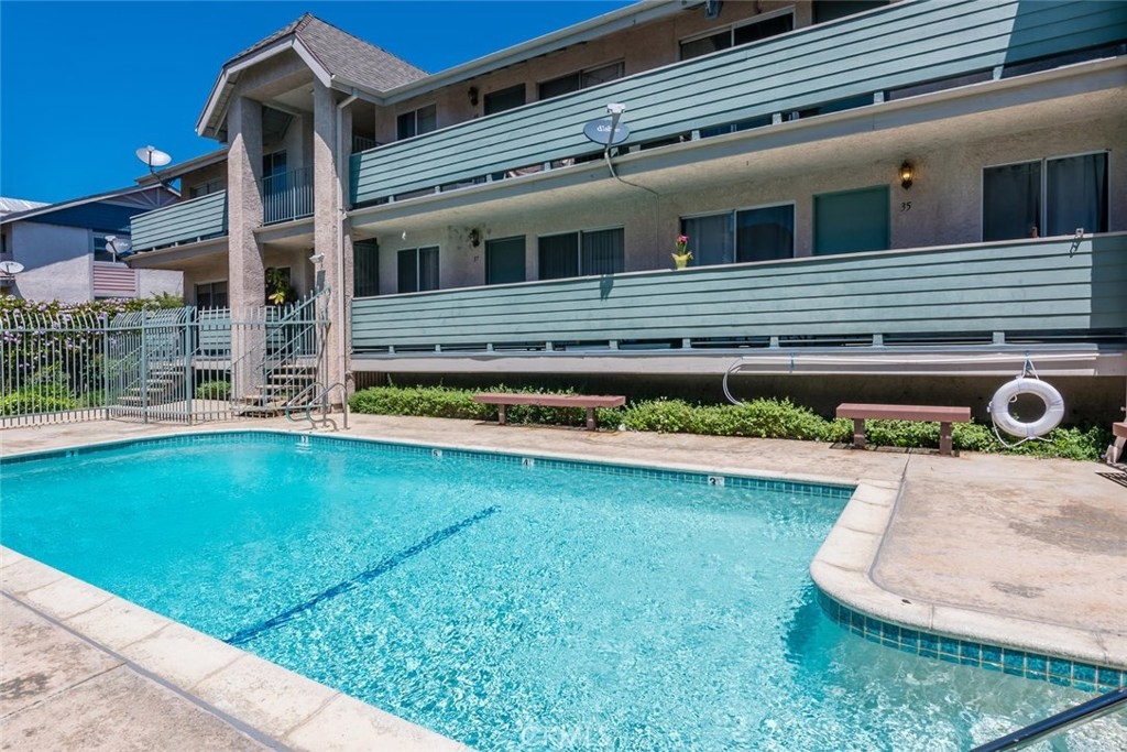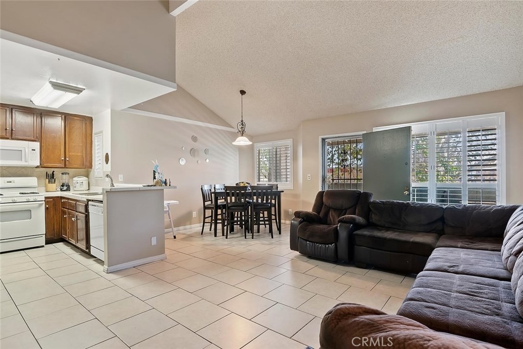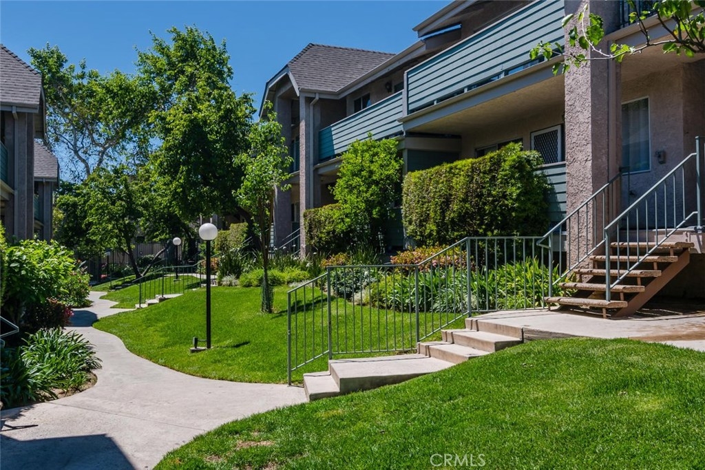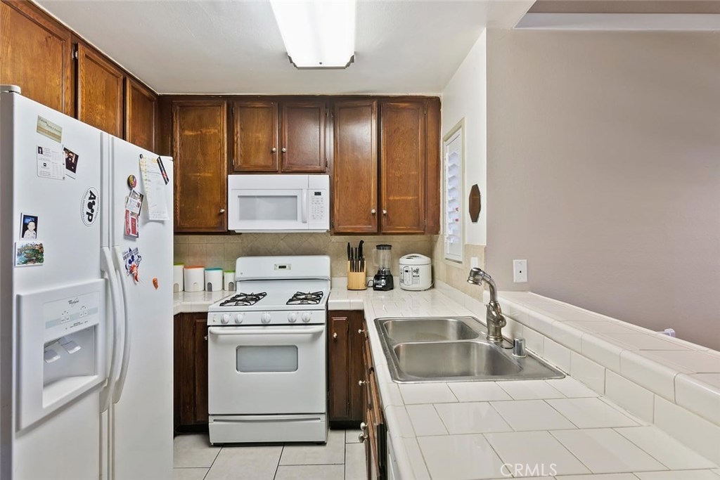 Better than Renting. Perfect for first time buyer or investor. Move in condition 2 bedroom, one level condo. Open floor plan encompassing a living and dining room area with vaulted ceiling. Kitchen with tile counter tops and tile flooring with a breakfast bar opens to the living and dining area. Tile flooring in the living area give this unit a modern appeal. Both bedrooms have engineered wood floors and ample closets. Full tub/shower combo bathroom. Plantation shutters further highlight this great unit. A detached garage accommodates 2 cars and houses the laundry facility. The complex also offers 2 pools, 2 spas, a play area for children and a sport court. Easy access to shopping and transportation make this the ideal location. A must see at this price.