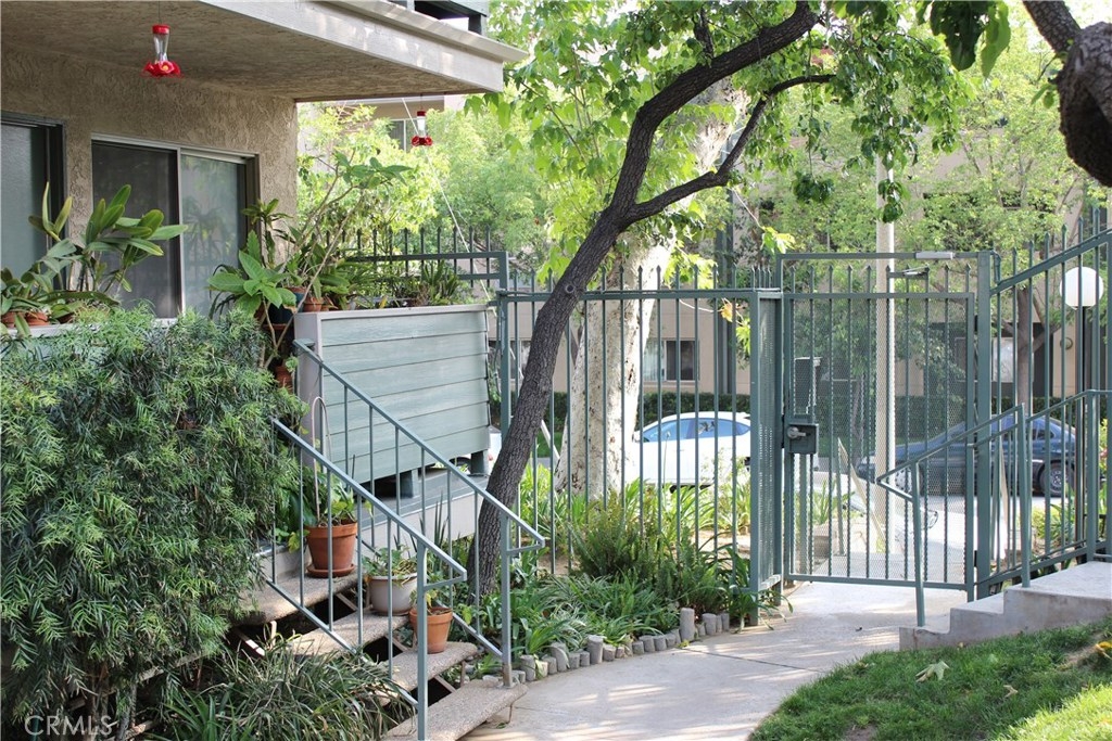 Beautiful corner unit! Seller has recently done several upgrades. New floors, fresh paint through out the unit. Bathroom has also been upgraded. Condo offers 2 bedrooms, 1 bathroom with an open concept kitchen, dining room, and living room. Wall to wall closets in master bedroom. Huge storage room in garage work bench. Own private laundry room in garage which is just a few step from your unit. HOA offers Pool with hot tub, basketball court, playground for kids, and green areas though out the complex. Property located near public transportation, near major freeways like 210, 5, and 118 freeway. Walking distance to restaurants and grocery stores. Must see!!