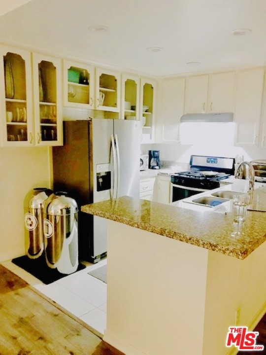 Welcome to this bright and remodeled top floor unit with plenty of recessed lights. The open floor plan with granite kitchen countertops, all stainless steel appliances matching the grey laminate flooring give you the sense of serenity for a long and stressful day. Two nicely sized bedrooms with mirrored closets and vaulted ceilings are a plus (virtually staged). Bathroom has a tub and shower, few steps from the sparkling pool, jacuzzi and a gated playground with padded pavement for your little ones. This will definitely be your love at first site home.