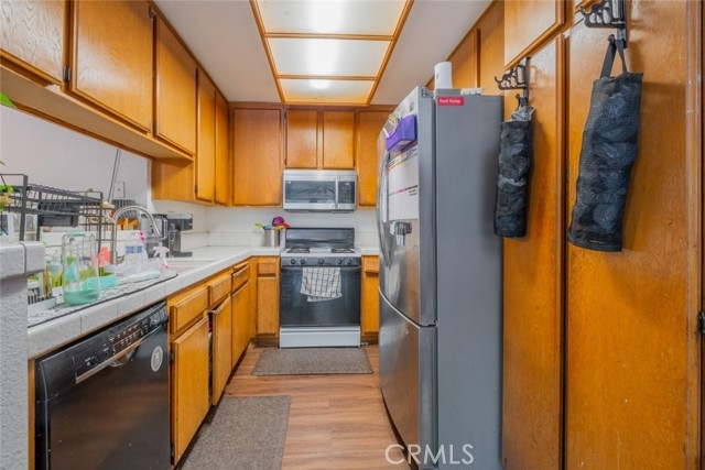 Welcome to 13144 Bromont Avenue #41, situated in Sylmar! First floor, corner unit! This beautiful 2 bedroom and 2 bathroom Townhome features an 864-SqFt open floorplan with laminate flooring, central AC and Heating, plus ample storage space. The unit has a spacious living room, dining room, and a bright kitchen. The kitchen is equipped with wood cabinets, tile countertops and nice appliances. Both bedrooms are bright and spacious. The unit comes with an enclosed tandem garage with a laundry room. The complex itself offers amenities such as a 1/2 basketball court, kids play area, and a pool. The complex has guest parking near unit just a short distance away from pool and spa. Centrally located in Sylmar, close to markets, dining options, schools and more.