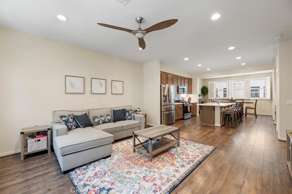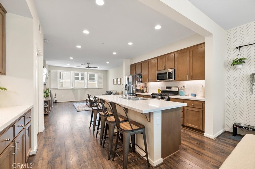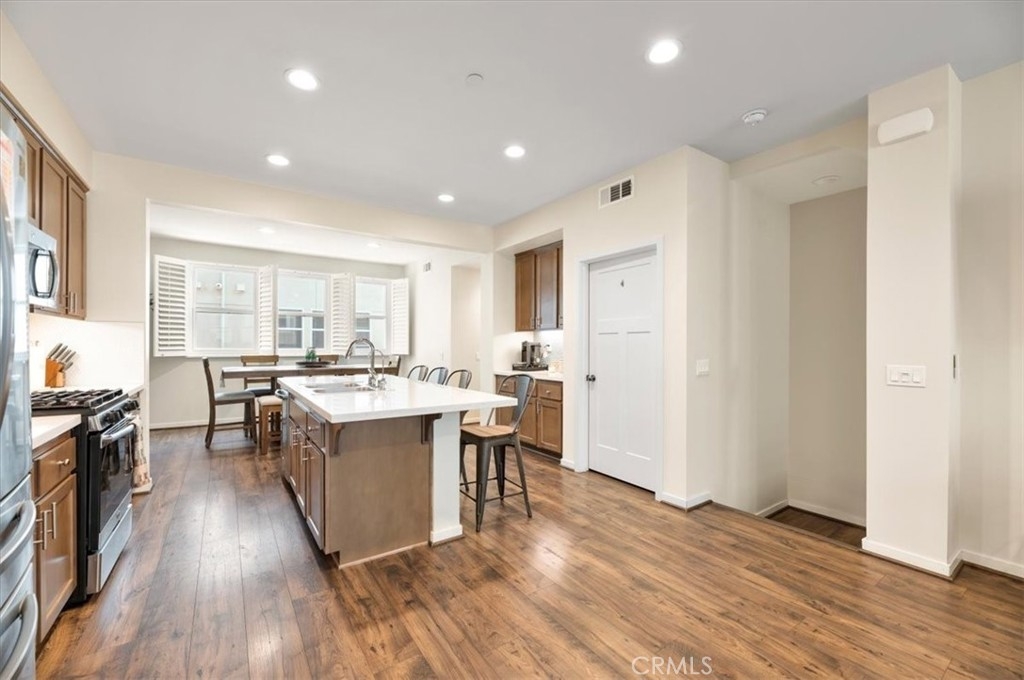 Welcome to 13231 Klein Court, a stunning three-story home located in the Tovara gated community of Sylmar. This exquisite property features an open and bright floor plan, with numerous amenities and upgrades that cater to a luxurious lifestyle. The first floor encompasses a spacious bedroom with a full bath, ideal for use as an office or guest suite. The second level boasts a generous living and dining area, complemented by a convenient half bath. The kitchen is a chef's dream, showcasing a gorgeous quartz island with matching countertops, stainless steel appliances including a stove, microwave, and multi-cycle built-in dishwasher, and a walk-in pantry. The top floor is dedicated to three bedrooms, including a magnificent master bedroom suite with two closets, along with ceiling fans in each bedroom. The home is adorned with wood shutters and double pane windows made with energy-efficient low "E" glass that blocks excessive heat and harmful UV rays, without compromising natural light. Additionally, the property features energy-efficient LED recessed lighting, upgraded flooring installed in 2022, fresh paint, and an EV charger in the two-car garage. The front patio is appointed with waterproof and slip-resistant composite wood decking. The Tovara gated community offers an impressive assortment of amenities that cater to a diverse range of interests. Residents have the privilege of enjoying a refreshing pool, a well-appointed BBQ area with picnic facilities, and a delightful children's play area. In addition, the community is ideally situated in close proximity to an abundance of recreational activities. Outdoor enthusiasts can explore the stunning hiking trails at Veterans Park, while avid golfers can indulge in a round of golf at El Cariso Park. The resident school is a noteworthy feature of the community, providing students with a valuable bilingual education. Experience the pinnacle of luxury living in a community that caters to your every need.