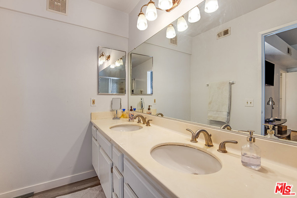 Two-level townhouse in a beautifully maintained gated community. Home has been upgraded tastefully throughout including a large kitchen with new cabinets & countertops, new modern flooring downstairs/kitchen/bathrooms, new hardwood flooring the master bedroom, new plush carpets on the stairs/hallways/2 bedrooms, and also includes new A/C and new Water Heater. Private patio and fireplace in the living room. Rare find with a private two-car garage and private laundry room! Community amenities include gated community guard, guest parking, manicured walkways, pool & spa.