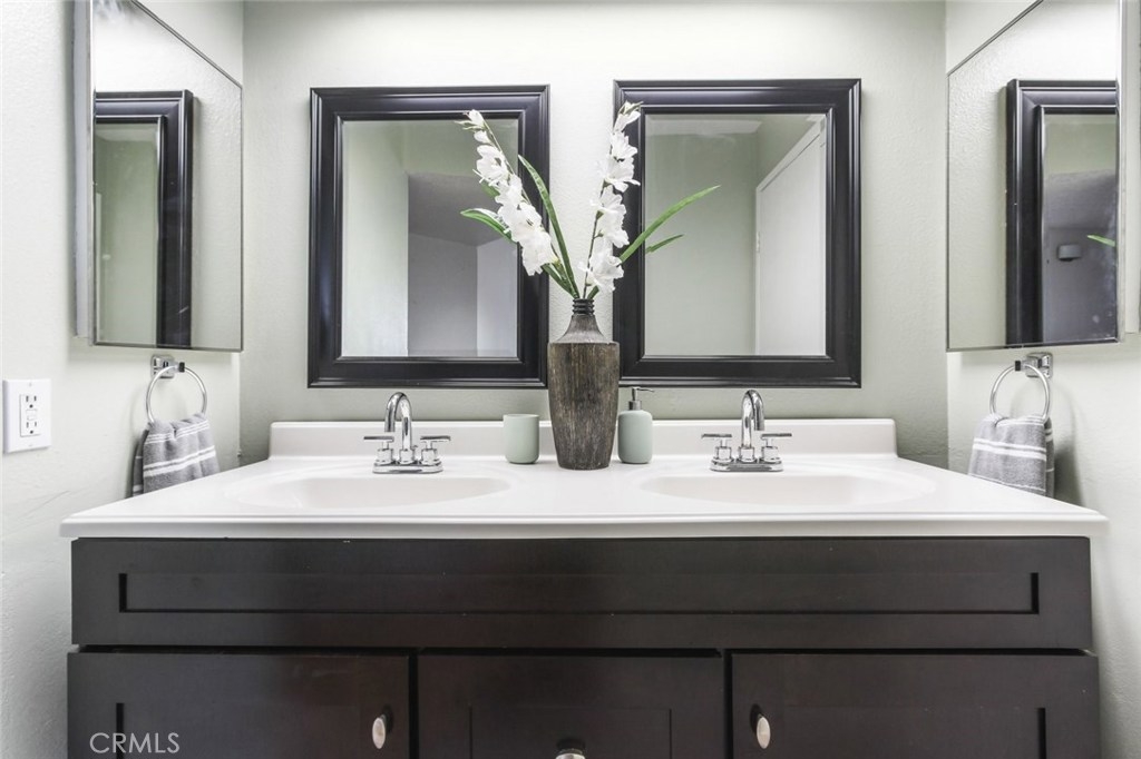 Perfect Condo nestled on a Cul-de-Sac street in Sylmar, Recently renovated four years ago, featuring a floor-plan of 1,146-SQFT of living space with 3 bedrooms and a 2-car garage! Upon entering the unit, you are greeted with a well-illuminated spacious living room with a soaring high ceiling, tons of natural light, a fireplace and sliding glass doors that lead out to your private balcony with a tree top view. Through the dining area find a charming renovated kitchen equipped with stainless steel-appliances and granite counter-tops with decorative tile back-splash. All 3 bedrooms are spacious with ample closet space. The larger of the rooms is a Master en-suite that features a private bathroom with dual vanities. Throughout the unit find sleek wood and tile flooring, baseboard moldings, high ceilings and recessed lighting. Located in a gated community with tons of visitor parking, as well as a community pool with a spa.