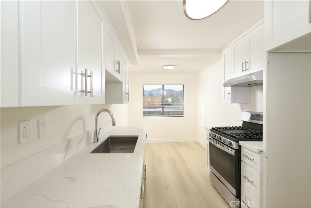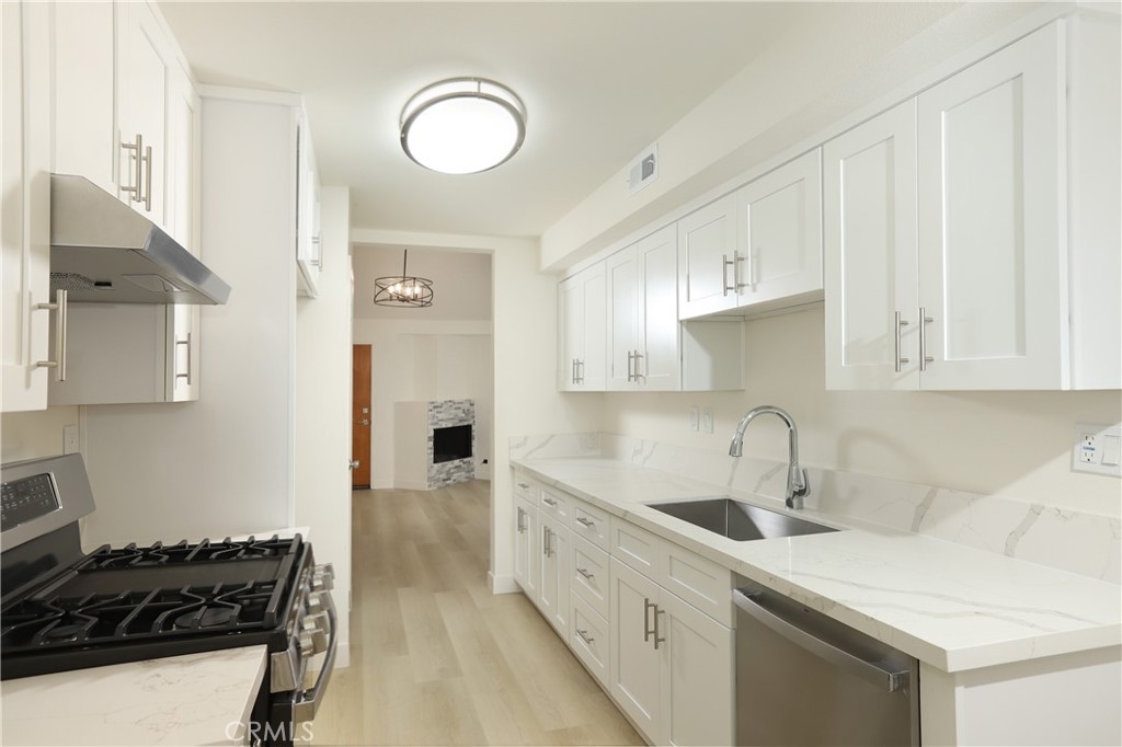 Newly remodeled, stunning 3 bed 2 bath top floor condo WITH mountain views in the heart of Sylmar! Located in the gated Northpoint Villas complex, this exquisite 1,146 SF condo was recently remodeled in 2024 and features NEW laminate flooring, a NEW kitchen - counters, cabinets, stainless appliances, NEW bathrooms - vanities, showers, tub, central HVAC, an updated fireplace and a balcony. The en-suite primary bedroom features a sizeable walk-in closet. The detached two-car garage w/ tandem parking features a newer garage door and motor, washer/dryer hookups and shelving. The Northpoint Villas complex offers abundant guest parking, and a glistening pool & spa surrounded by lush landscaping and gardens. The complex was built in 1987 and is conveniently situated minutes away from the 210 major freeway, shopping, and Sylmar High School.