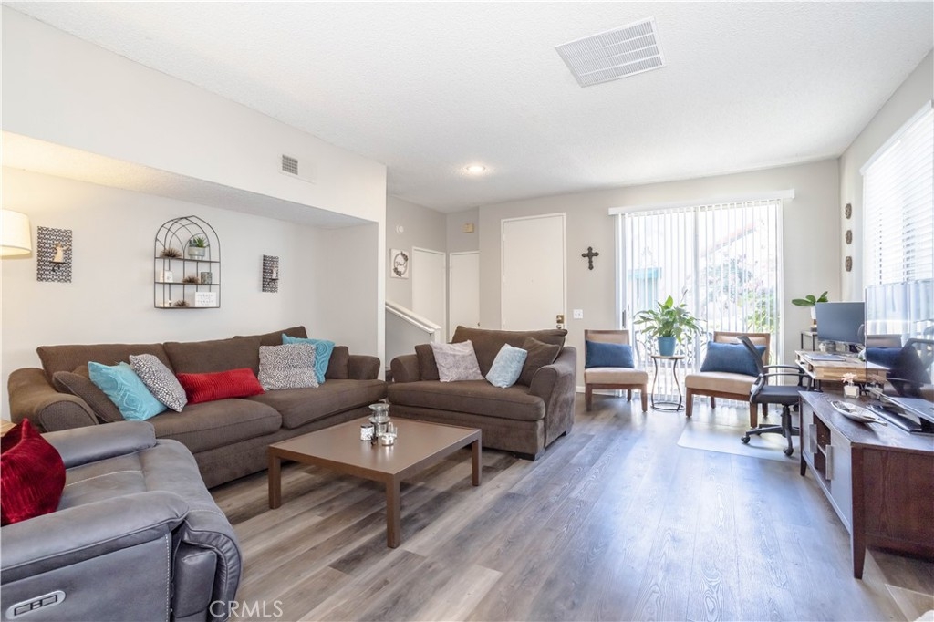 MUST SEE THIS CHARMING PRIVATE END UNIT WHICH FEATURES 3 BEDROOMS 2 1/2 BATHROOMS WITH OVER 1250 SQ FT OF LIVING SPACE. THIS HOME OFFERS AN OPEN SPACIOUS KITCHEN, FIREPLACE IN LIVING ROOM, HIGH CEILINGS IN THE MASTER BEDROOM,IN UNIT LAUNDRY AREA, 2 CAR ATTACHED GARAGE, AND WOOD DECK. UNIT HAS NEW LAMINATE FLOORING. PROPERTY IS SURROUNDED BY BEAUTIFULLY MAINTAINED COURTYARDS WITH A GATED SPARKLING COMMUNITY POOL AND SPA AREA.HOA INCLUDES TRASH AND WATER.SECURE GATE AND SECURITY PATROL.CONVENIENTLY LOCATED NEAR FREEWAYS, SCHOOLS,HOSPITAL AND WALKING TRAILS. ALL OF THIS SITUATED IN THE HIGHLY DESIRABLE CRESCENT PARK.DON'T MISS OUT, CALL TODAY!