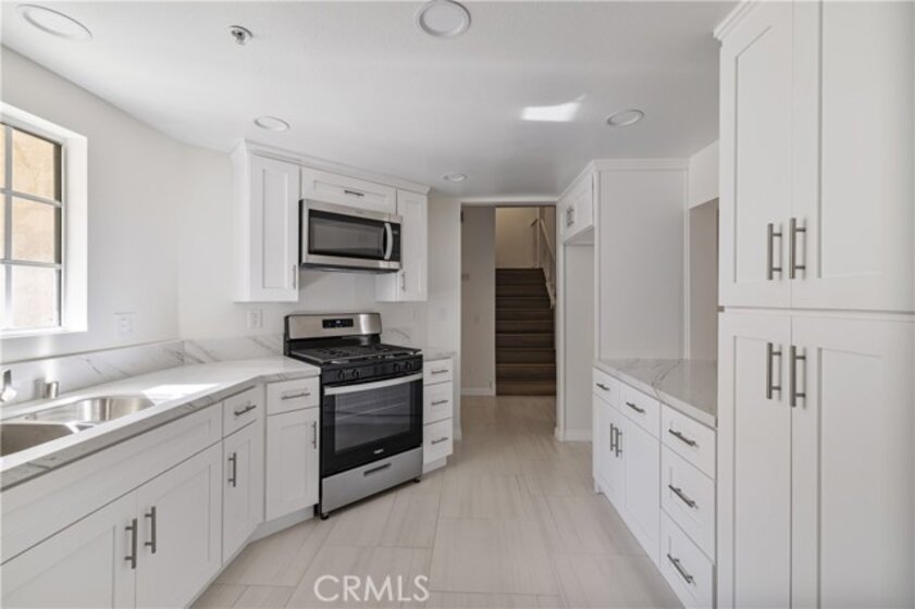 Located in the gated community of Astoria Gardens, this beautifully upgraded 3-bedroom, 2.5-bath home stands out for its stunning architectural design, vaulted ceilings, and warm, inviting style. The kitchen has been remodeled with stone countertops, stainless steel appliances, and modern finishes. Every surface throughout the home shows off gorgeous upgrades. The living room features a cozy fireplace and connects to a formal dining area thats perfect for entertaining. Upstairs, the spacious primary suite offers a walk-in closet, private balcony, and a fully remodeled bathroom, while the secondary bedrooms and bath have also been updated with the same attention to detail. On the third level, a private skydeck captures peaceful mountain views, an ideal place to unwind. Complete with an attached two-car garage, indoor laundry and HOA coverage for trash, water, and front yard maintenance. This move-in-ready home blends style, comfort, and function in one of Sylmar's most desirable gated communities.