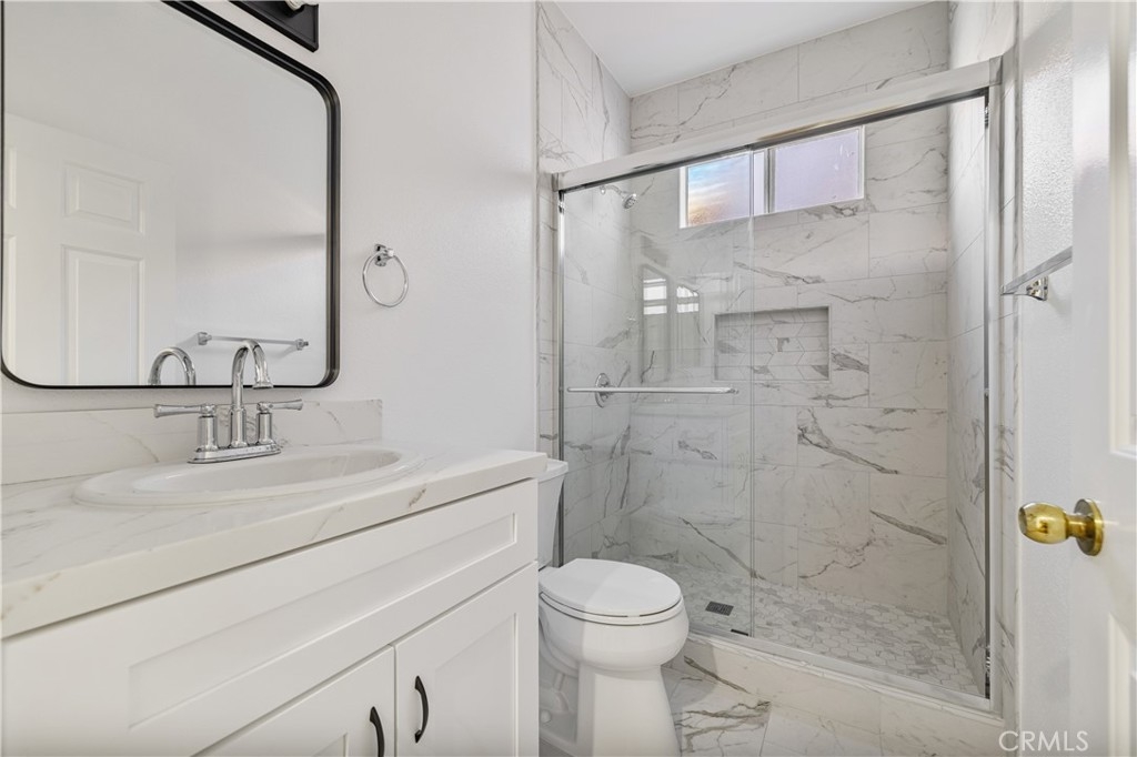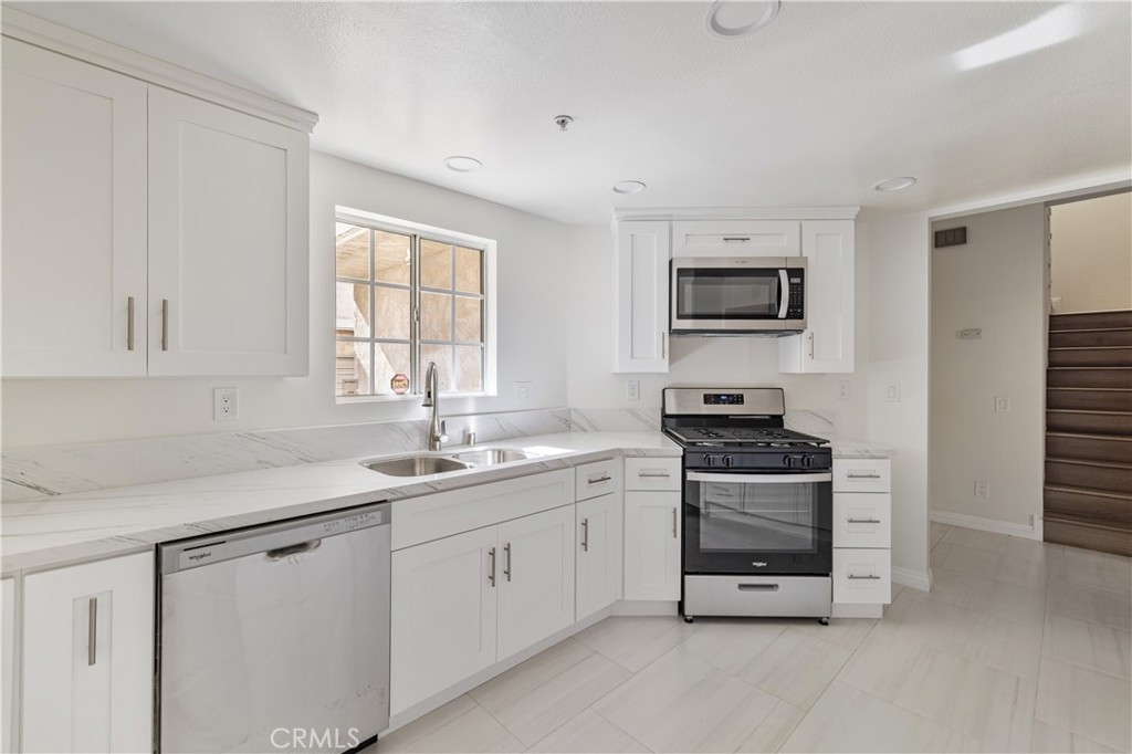 Welcome to Astoria Gardens, one of Sylmar’s most desirable gated communities. This beautifully upgraded three bedroom, two and a half bath home has incredible natural light, warm wood-like floors, and the comfortable, stylish feel buyers want in a move-in-ready property. The living room features vaulted ceilings, beautiful architectural lines, and a cozy fireplace that creates an inviting atmosphere the moment you walk in. The remodeled kitchen includes stone countertops, stainless steel appliances, modern cabinetry, and clean finishes throughout. The dining area sits right off the kitchen, making it ideal for entertaining or everyday meals. A convenient half bath is located on the main floor, perfect for guests and everyday use without having to go upstairs. Upstairs, the primary suite offers great space, a walk-in closet, a private balcony, and a fully remodeled bathroom with contemporary finishes. The secondary bedrooms are generous in size and have also been updated with the same attention to detail. A remodeled secondary bath completes the upper level. One of the best features of this home is the private third level sky-deck. It’s the perfect spot to relax, enjoy peaceful mountain views, and unwind at the end of the day. This home also includes an attached two car garage, indoor laundry, and HOA coverage for water, trash, and front yard maintenance. It is truly move-in ready and blends comfort, function, and style in a gated community that remains one of Sylmar’s most attractive places to live.