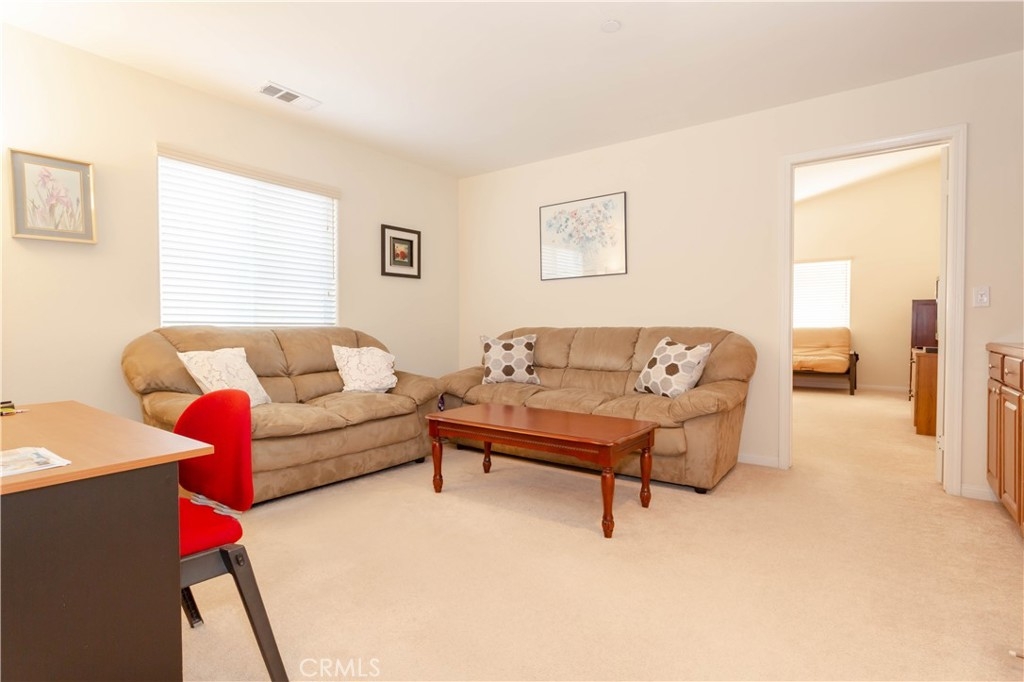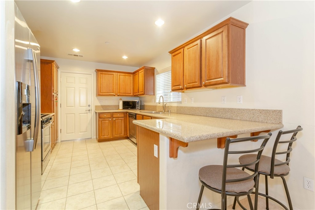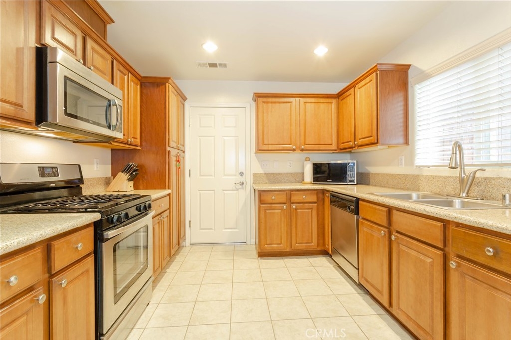 This beautiful 2009 built home is nestled in one of Sylmar’s most sought after small gated communities with amazing views of the surrounding mountains. ?You’ll step into a flowing 2,050 square foot open concept floor plan that is in “Move-In-Condition” with new plush carpeting, and custom window treatments ?The spacious living room is bathed in natural light ?The family’s cook is going to truly appreciate the large galley kitchen’s recessed lighting, abundant refinished cabinets, pantry, beautiful granite counters, durable dual basin stainless steel sink, built-in stainless steel appliances, easy care tile flooring, breakfast bar, and the convenience of the large adjoining dining area with its direct patio access ?3 bedrooms; The large master suite has wonderful views of the Valley, a high vaulted ceiling, huge walk-in closet, and a beautifully appointed bathroom with “His & Her” sinks, soaking tub, and glass enclosed shower ?A total of 2½ bathrooms; ½ bath is located on the first level for your guests ?Very large second story loft ?Functionally located laundry ?Energy efficient dual pane windows will help keep your utility bills low ?Central air & heat for year-round comfort ?Fire suppression interior sprinkler system ?Long lasting Spanish tile roof ?Your going to spend countless hours enjoying the backyard’s large patio with its intricate paver pattern ?2 car direct access garage ?Great location within walking distance of hiking trails and Wilson Canyon Park- private tour.