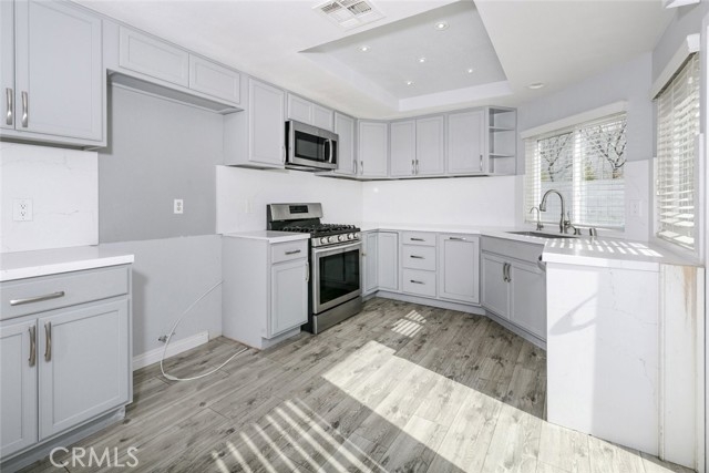 Step into this inviting 2-bedroom, 2-bathroom residence offering 1,268 sq. ft. of comfortable living in a desirable Sylmar neighborhood. Bathed in natural light, the home boasts soaring vaulted ceilings, an open-concept layout, and stylish flooring throughout. The recently renovated kitchen stands out with its contemporary cabinetry, quartz countertops, and sleek appliances—perfect for everyday living and entertaining alike. The primary suite serves as a serene retreat, complete with generous closet space and a beautifully modernized en-suite bath. A second well-sized bedroom offers versatility as a guest room, office, or additional living area. Residents can also enjoy access to community amenities, including a sparkling pool and tennis court, ideal for relaxation or recreation year-round. Tucked within a peaceful community yet close to shopping, dining, and major freeways, this home blends comfort, convenience, and lifestyle. Don’t miss your chance to make this Sylmar treasure yours—schedule a showing today!