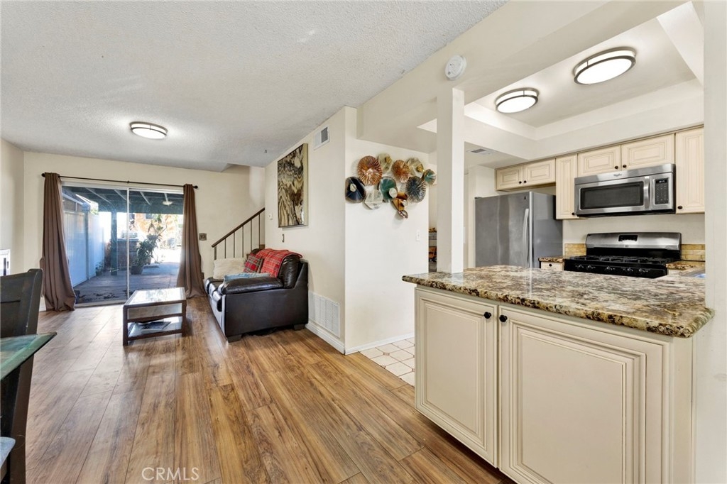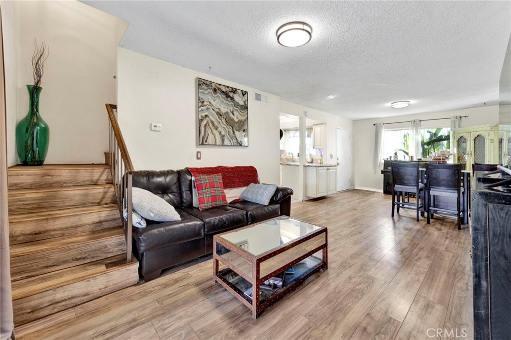 Welcome to this beautifully maintained 3-bedroom, 1.5-bathroom condo located in a peaceful and highly sought-after neighborhood of Sylmar. Situated in a well-kept complex, this ground-floor unit offers comfortable living with convenient access to amenities and major freeways. Upon entering, you'll be greeted by an open floor plan that maximizes space and natural light. The spacious living room features a bright and airy atmosphere, perfect for relaxing or entertaining. The adjacent dining area is perfect for enjoying meals with family or friends. The kitchen boasts ample cabinetry, and granite countertops with functional space for both meal prep and casual dining. All three bedrooms are located upstairs along with a full bathroom with a double sink. Additional highlights include in-unit laundry hookups, central air conditioning, and carport parking in front of the unit. The community features well-maintained common areas and is conveniently located near local parks, schools, shopping, and dining. With easy access to major highways like the 210 and 5 Freeways, this condo is ideal for commuters. Whether you're a first-time homebuyer or looking for an investment property, this is a fantastic opportunity to own in Sylmar.