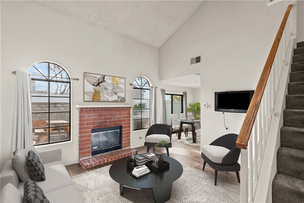 Welcome to this charming 3-bedroom, 3-bathroom in Sylmar, CA, offering 1,126 square feet of potential in a prime location. This townhome is perfect for first-time buyers looking to add their personal touch and transform it into their dream home. Upon entering, you are greeted by a spacious, tiled foyer with high ceilings and a double-door entry. To the left, you'll find direct access to the two-car attached garage, making unloading groceries a breeze. Adjacent to the garage, there's a convenient ½ bathroom for you and your guests. The inviting living room features a wood-burning/gas fireplace, perfect for cozy evenings, it flows seamlessly into the dining room and kitchen area. The open floor plan is ideal for entertaining, with the dining room offering sliding-glass doors that lead to your small private yard—perfect for a quiet retreat or gardening. The kitchen is well-equipped with ample storage cabinets, plenty of counter space, and a pantry cupboard to help keep everything organized. Upstairs, you'll find three well-sized bedrooms. Two of these bedrooms share a full bathroom with hallway access. Additional cabinets along the hallway provide convenient storage space. The spacious primary bedroom has two sinks, a wardrobe closet, and a skylight that fills the room with natural light. The two-car garage is also home to the washer, dryer, and water heater. The community offers a pool and spa at the end of the driveway, perfect for relaxing and unwinding. The HOA fee covers common area maintenance, including the structure’s exteriors, roofs, fire insurance, water, sewer, and trash. Don’t miss the chance to own this wonderful property in a desirable area of Sylmar!